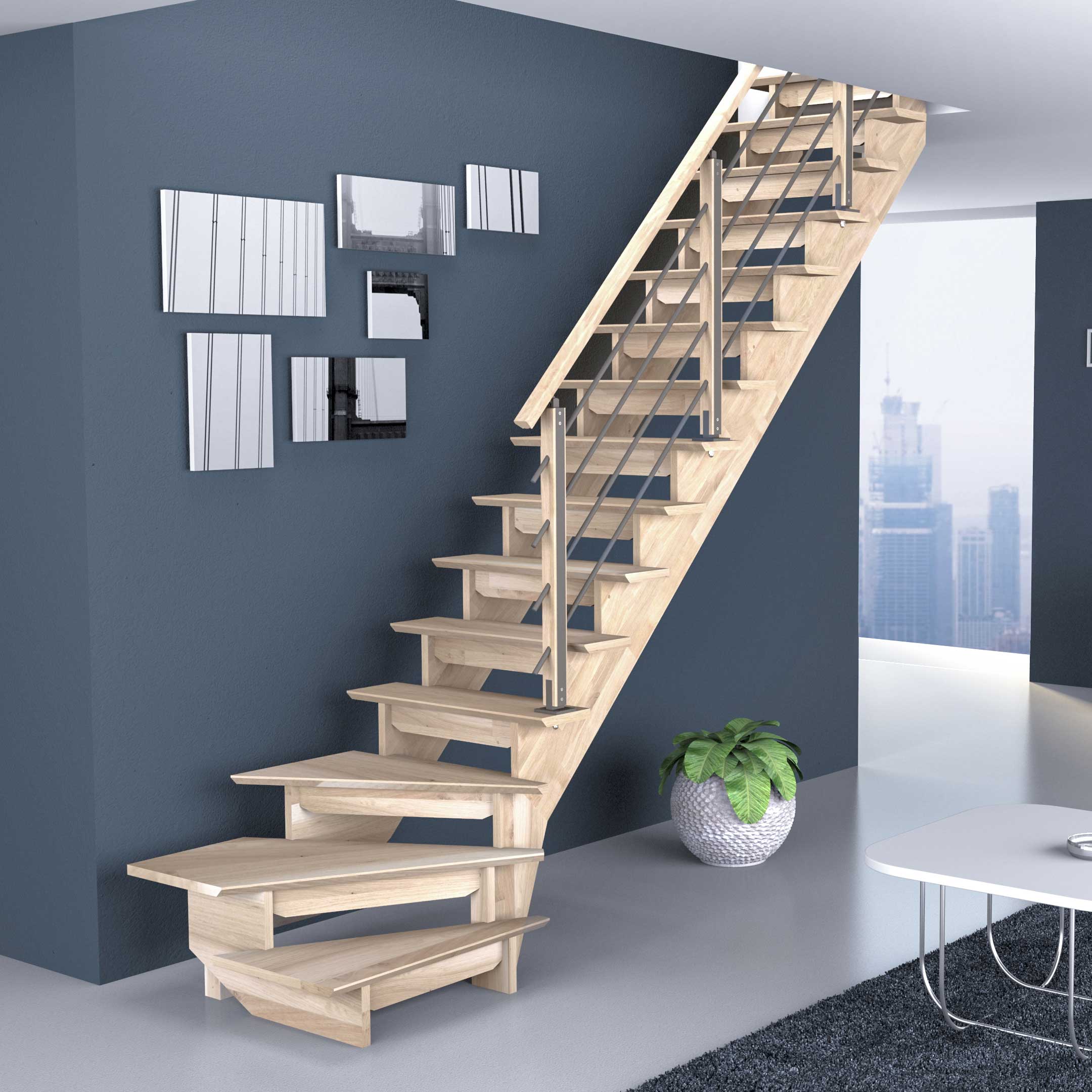 Lofttrappa ByggeraAuvergne L-form inkl. Barnskydd och Trappräcke