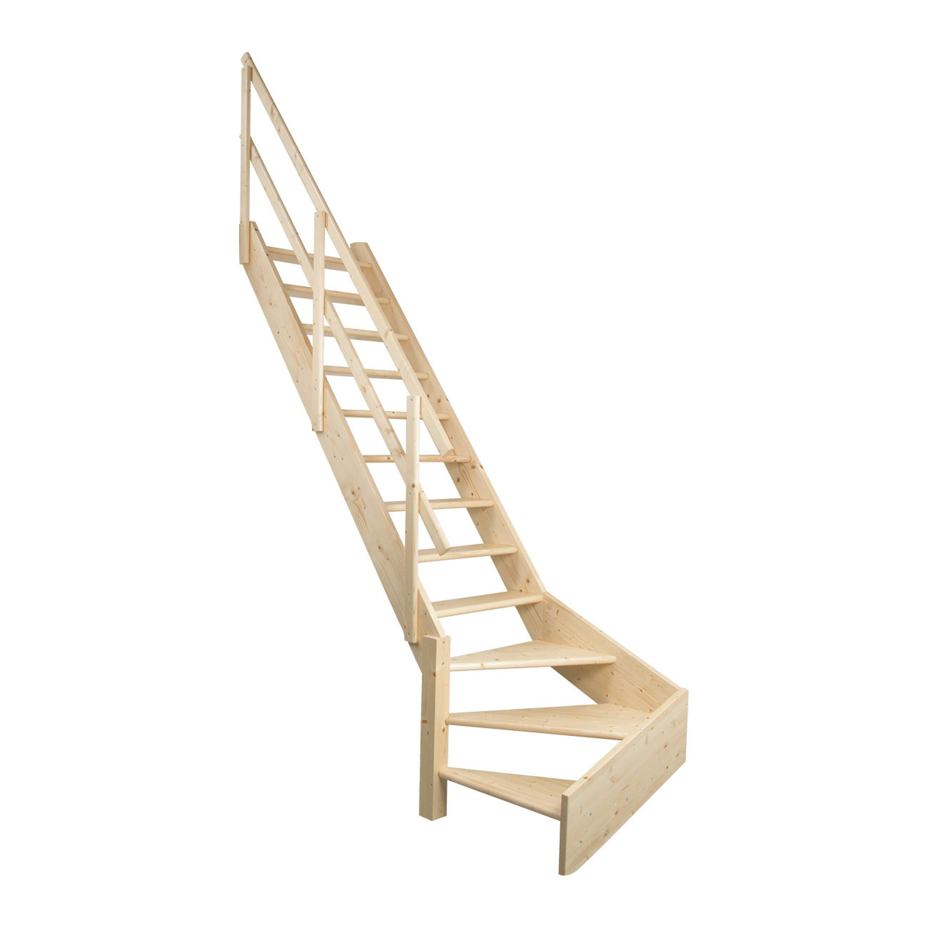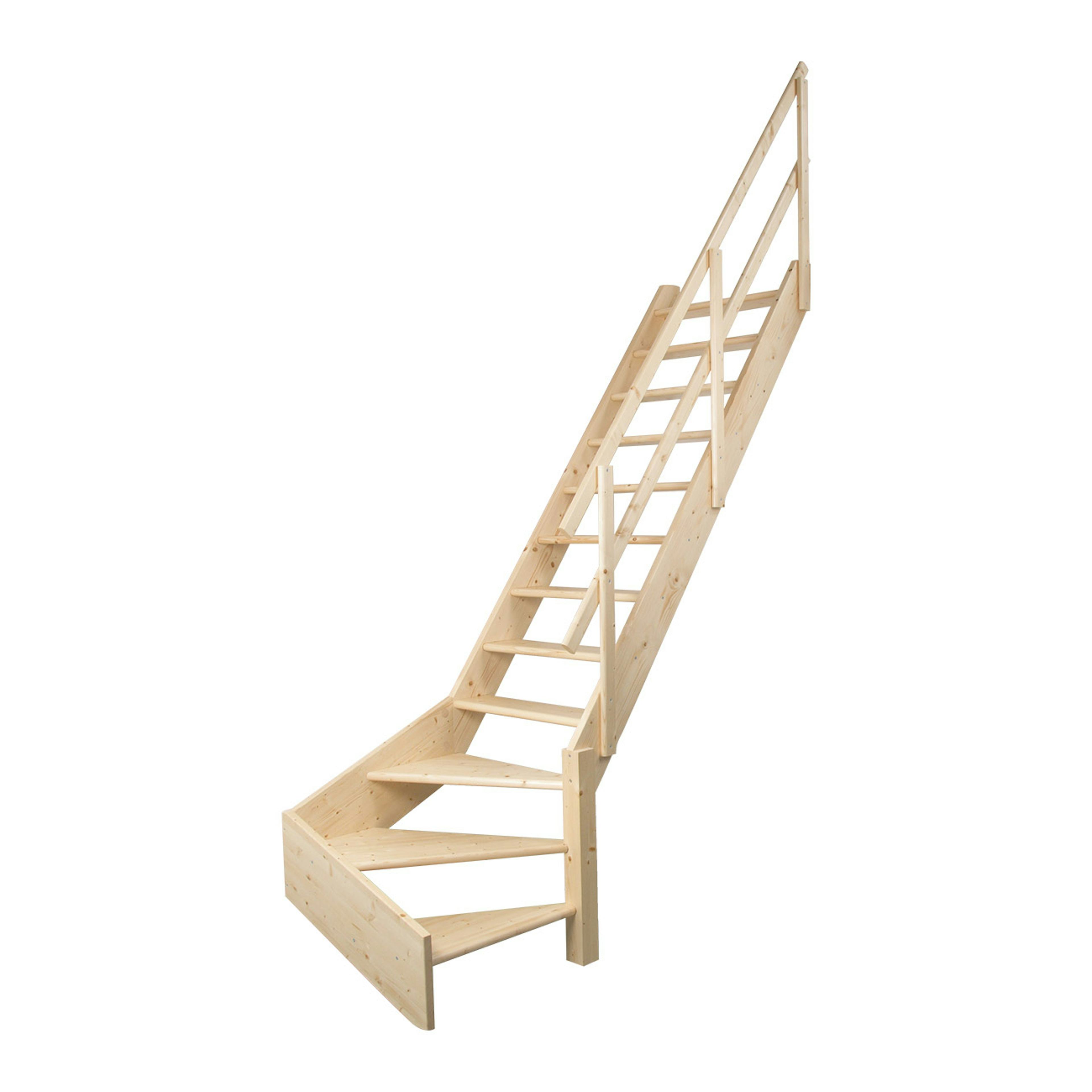Normandie lofttrappa med räcke från Dolle har inbyggda steg, vangstycken och ledstång i massiv gran. Stegen är solida med ett säkert och bekvämt djup på 19 cm. Tillverkad i FSC®-certifierat trä och levereras obehandlad. Trappan kan höjdjusteras genom att förkorta vangstyckena.