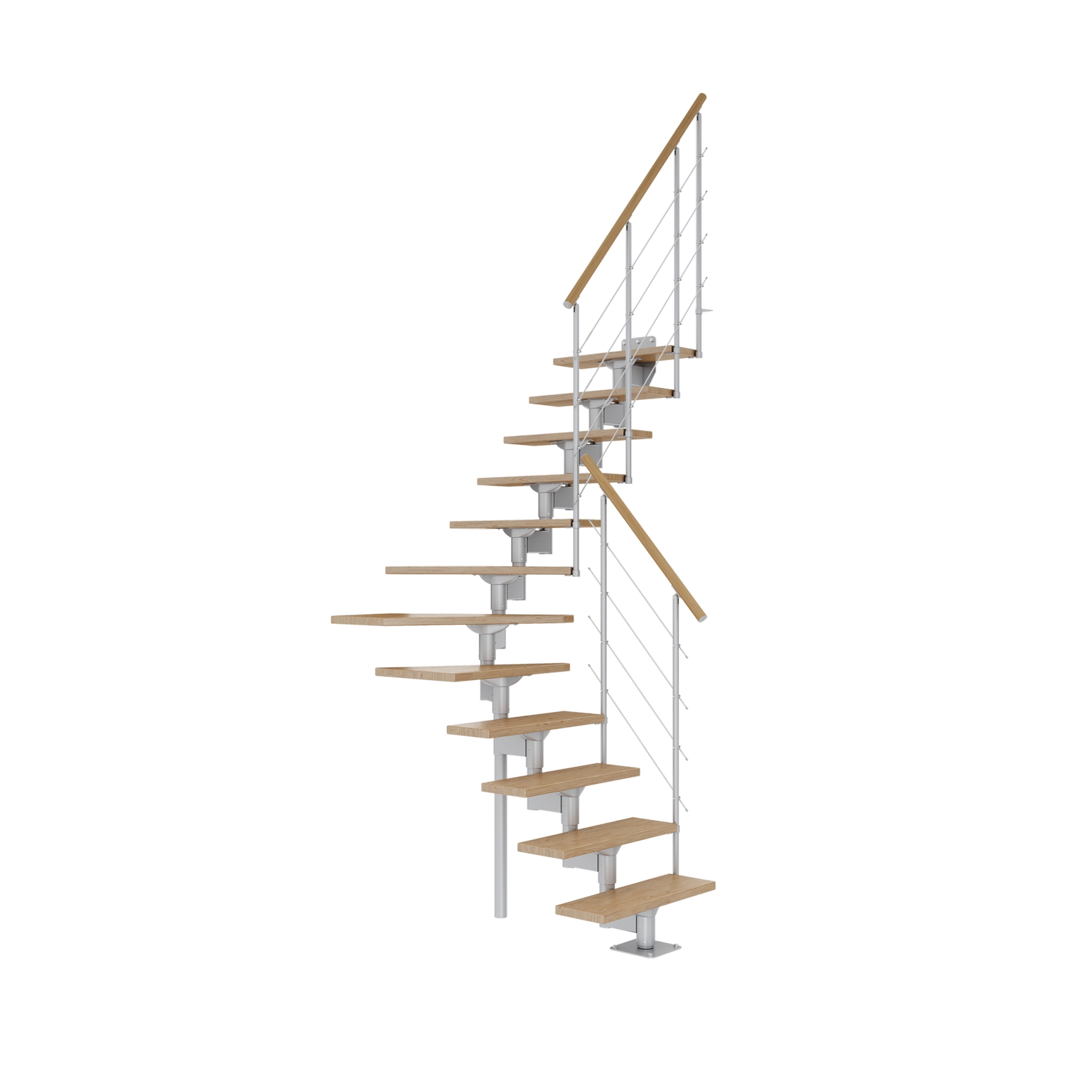 Ett skyddsräcke på en sida ingår alltid. Du kan även montera ytterligare ett skyddsräcke, eller enkelt installera trappan mot en vägg. Räcket är konstruerat för installation på trappstegets raka delar.