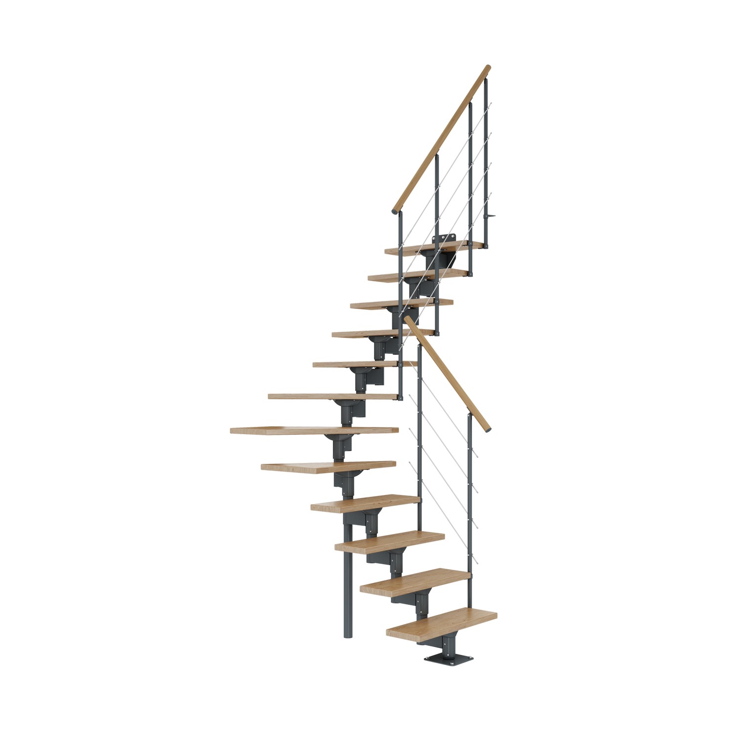 OBS! När du installerar trappan som i kvartssvängd form är det viktigt att montera två väggfästen eller två trappstegskopplingar (ingår i paketet).