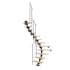 11-15 massiva trästeg ingår som ger en maximal golv-till-golvhöjd på 360 cm. Vid 13-15 steg är det nödvändigt att installera stödstolparna som ingår i paketet. Om golv-till-golvhöjden inte är nödvändig avlägsnas steg helt enkelt tills önskad höjd nås. Trappans ytor är otroligt slitstarka, tål repor och är lätta att underhålla tack vare den halvblanka ytan. Höjden på varje steg kan justeras mellan 18,5 och 22,5 cm.