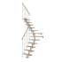 11-15 massiva trästeg ingår som ger en maximal golv-till-golvhöjd på 360 cm. Vid 13-15 steg är det nödvändigt att installera stödstolparna som ingår i paketet. Om golv-till-golvhöjden inte är nödvändig avlägsnas steg helt enkelt tills önskad höjd nås. Trappans ytor är otroligt slitstarka, tål repor och är lätta att underhålla tack vare den halvblanka ytan. Höjden på varje steg kan justeras mellan 18,5 och 22,5 cm.
