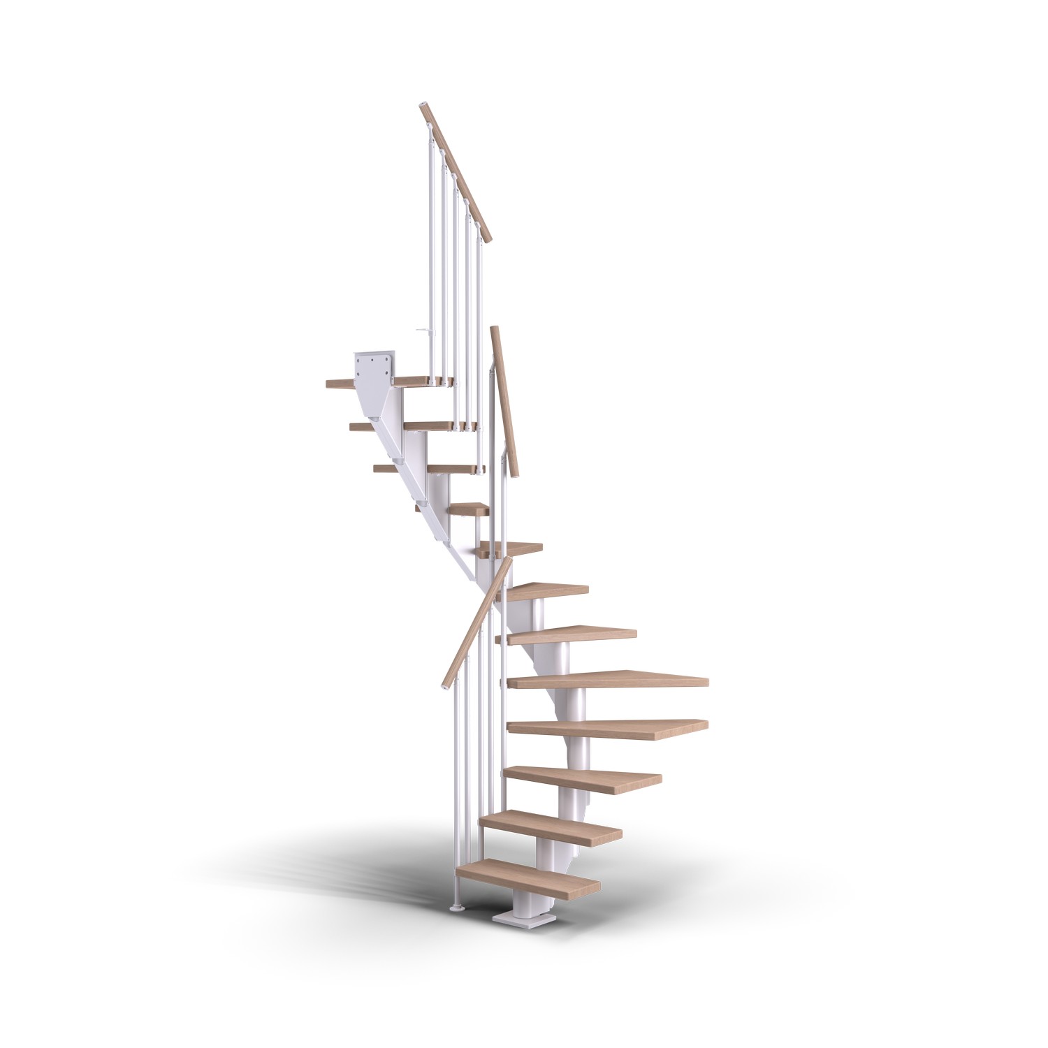 Genom att forma trappans modulära struktur till ditt rum skapas ett helt unikt intryck. Upp till 13 steg ingår, vilket ger en maximal golvhöjd på 301 cm. Varje steg har en justerbar höjd mellan 18,5 och 21,5 cm. Väggfästen ingår för att öka trappans stabilitet. Dolles steg och räcken är gjorda av högkvalitativt FSC®-certifierat trä förseglat med olja. Trapporna har fått en miljövänlig ytbehandling för att lyfta fram de estetiska elementen i träet med en naturlig finish. Njut av känslan av en trappa med kvalitetsträ!