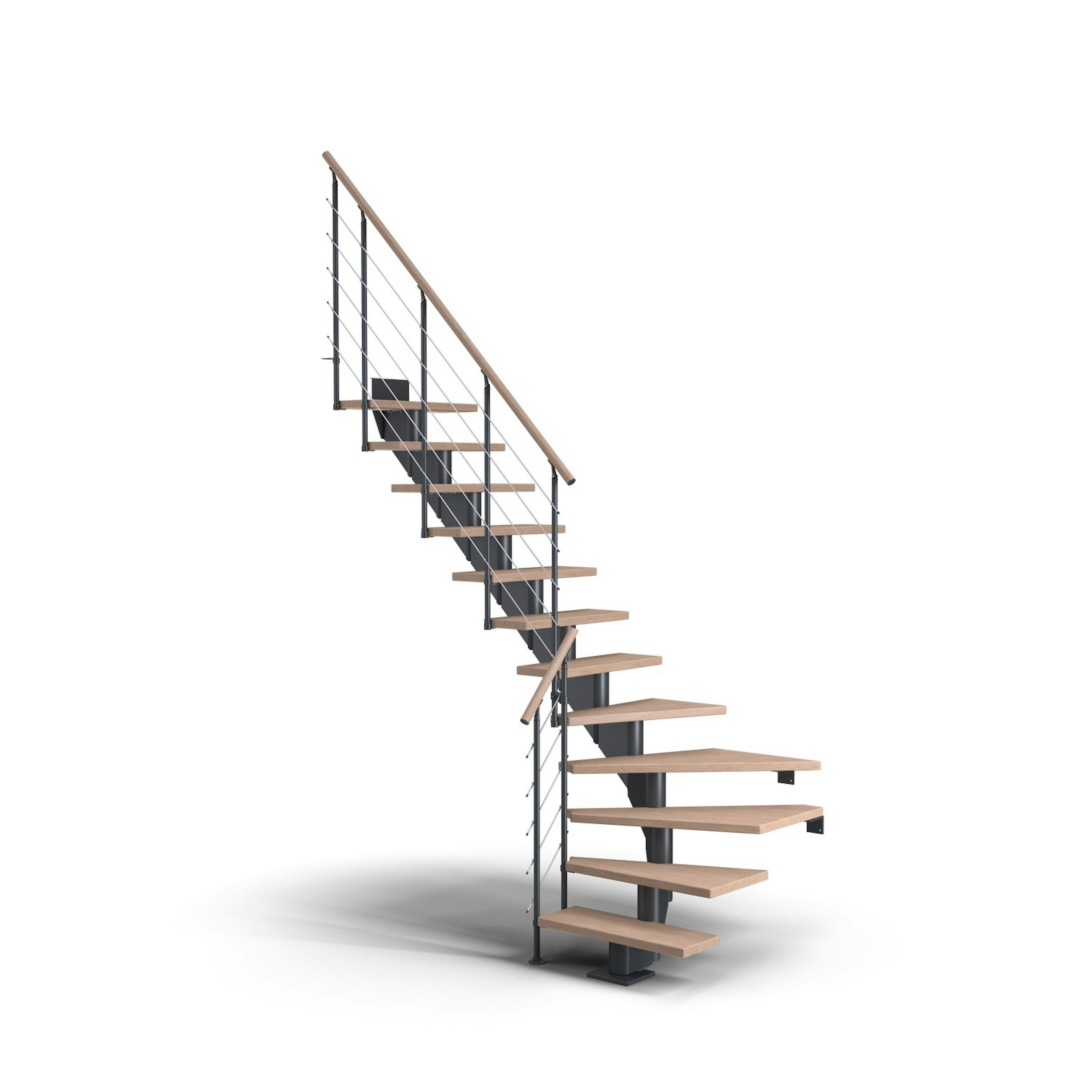 Spartrappa Dolle Hamburg Ek Vit Oljad 1/4 Style6Grå, LxB: 2920x890 mm, Max Takhöjd: 2770-3220 mm