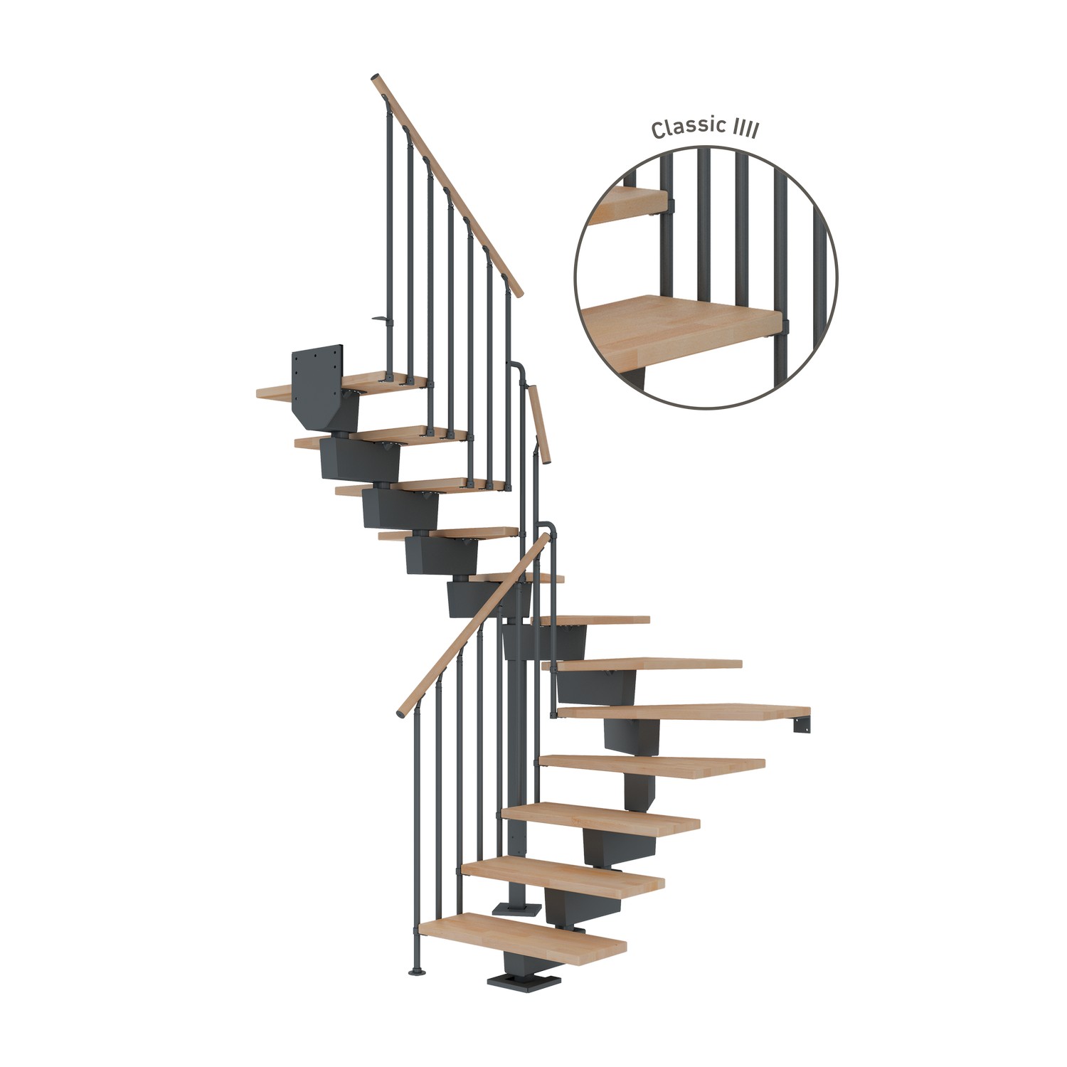 Vinkeltrappa DolleDubai Bok Oljad 1/2 Classic IIIIAntracit, Max Takhöjd: 2380-2940 mm, Antal Steg: 13 st