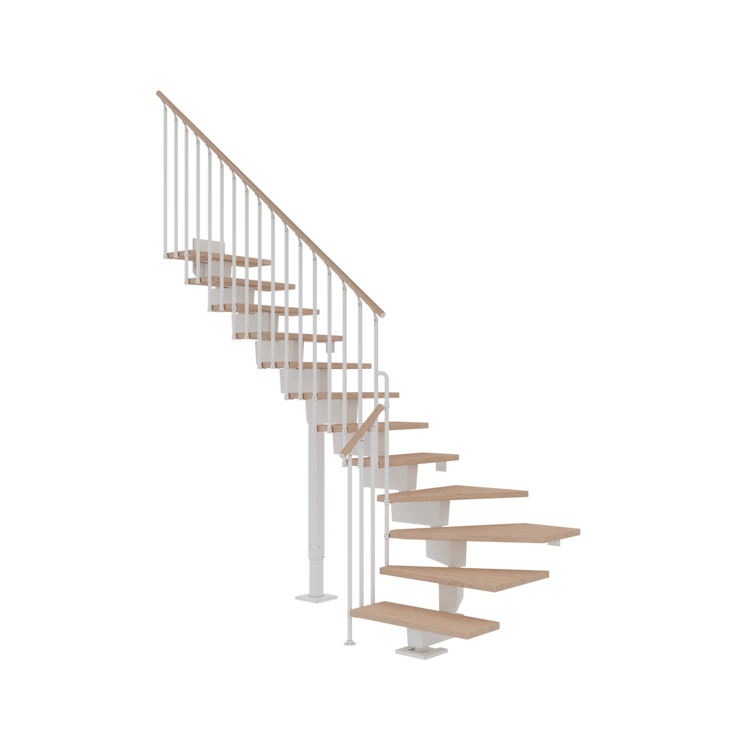 Vinkeltrappa Dolle Dubai Ek Vit Oljad 1/4 Classic III är en modern huvudtrappa med högsta komfort. Dubai är en modern och Skandinavien-inspirerad huvudtrappa, som med sin lätta och eleganta design passar perfekt in i den nordiska, moderna stilen.