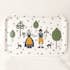 Bricka från Arvidssons Textil. Svenskdesignat mönster med människor i folkdräkt, midsommarstång & kyrkor. Tillverkad i Sverige.