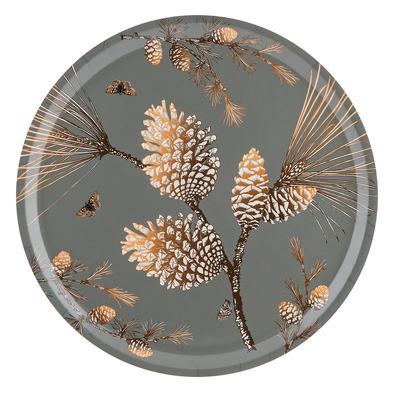 Bricka med mönster i form av tallkvistar och tallkottar. Mönstret är formgivet av engelska Sam Pickard. Brickan är tillverkad av FSC®-certifierad björkfanér med en skyddande yta av melamin vilket gör produkten mycket hållbar. Tillverkad i Sverige. Tål maskindisk.