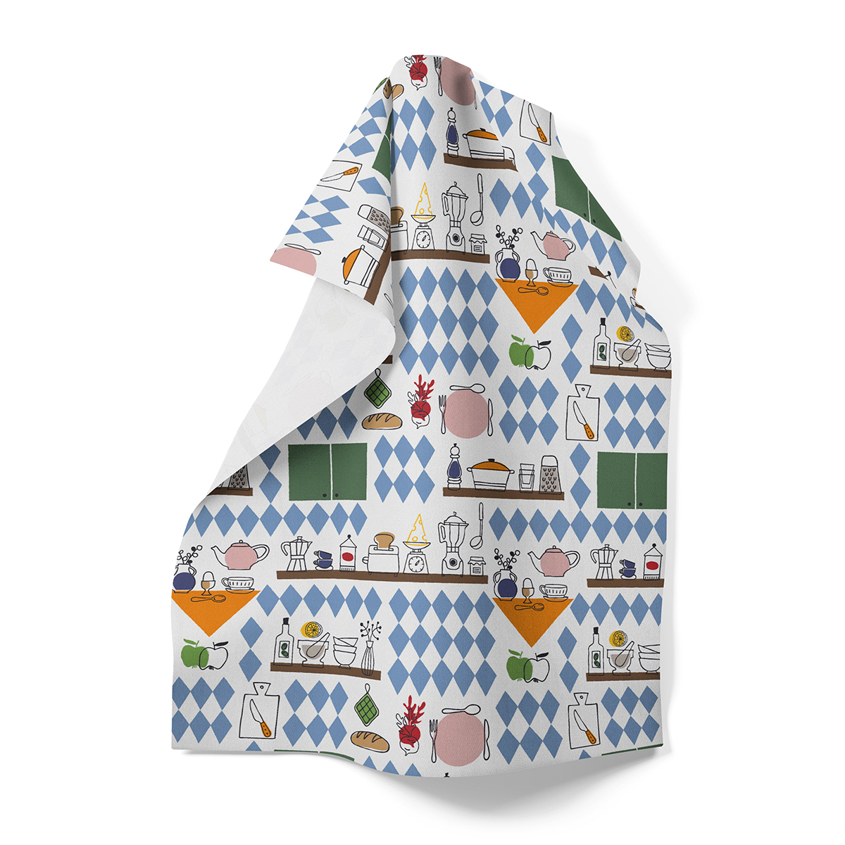 Kökshandduk Arvidssons Textil Köket är en fin handduk för köket. Design köket är ett lekfult grafiskt mönster i 50-60 talsstil.