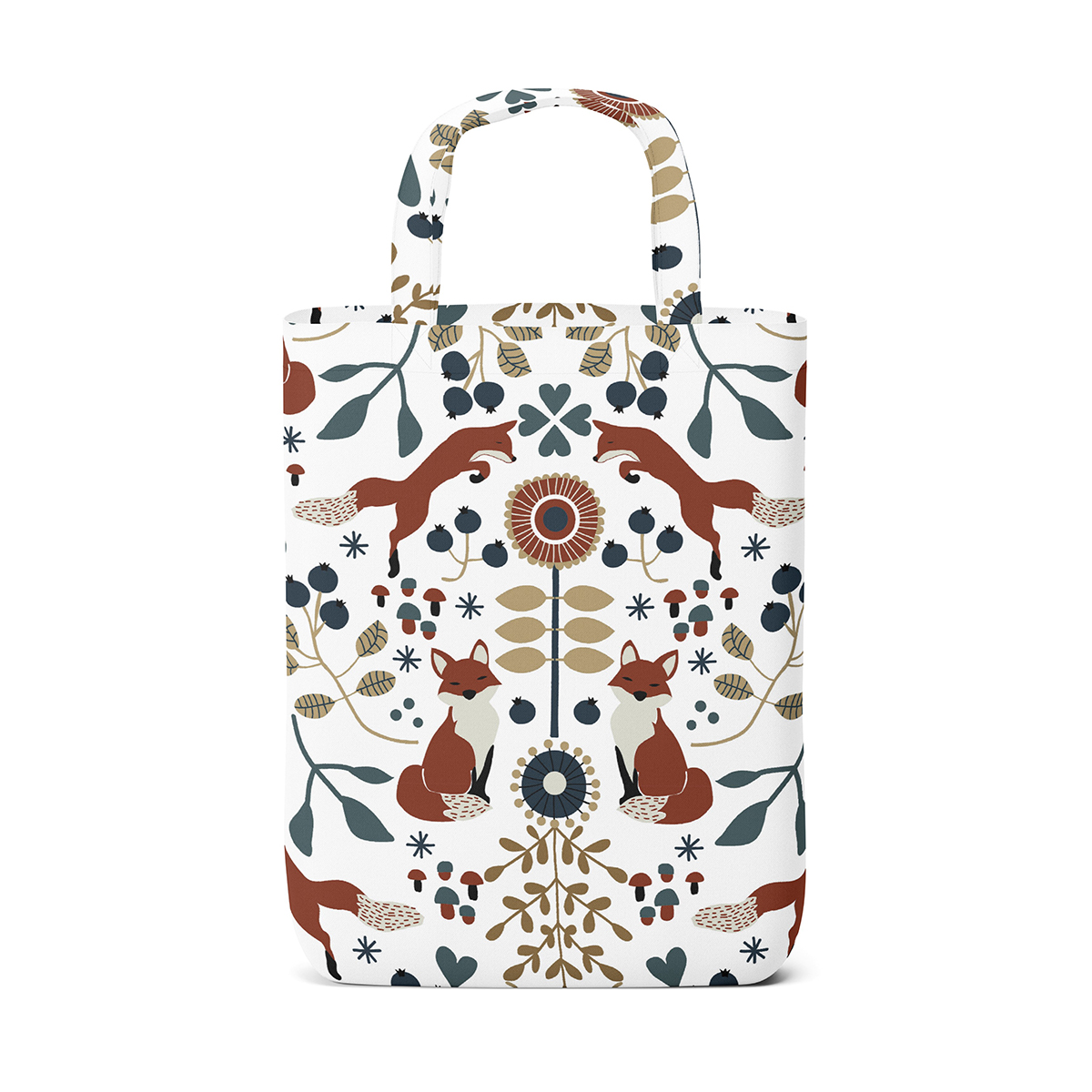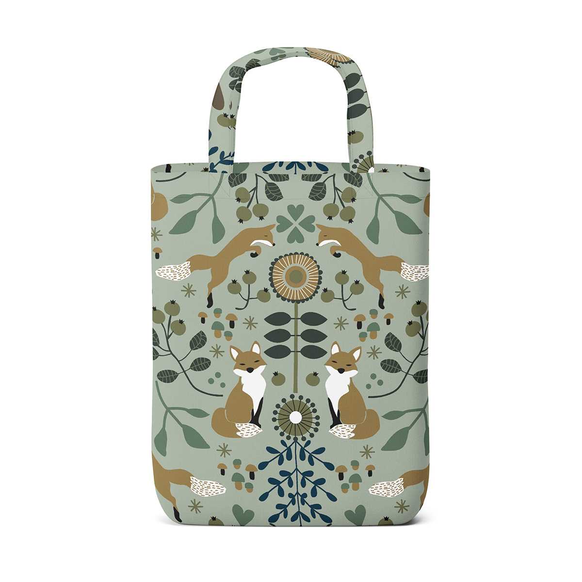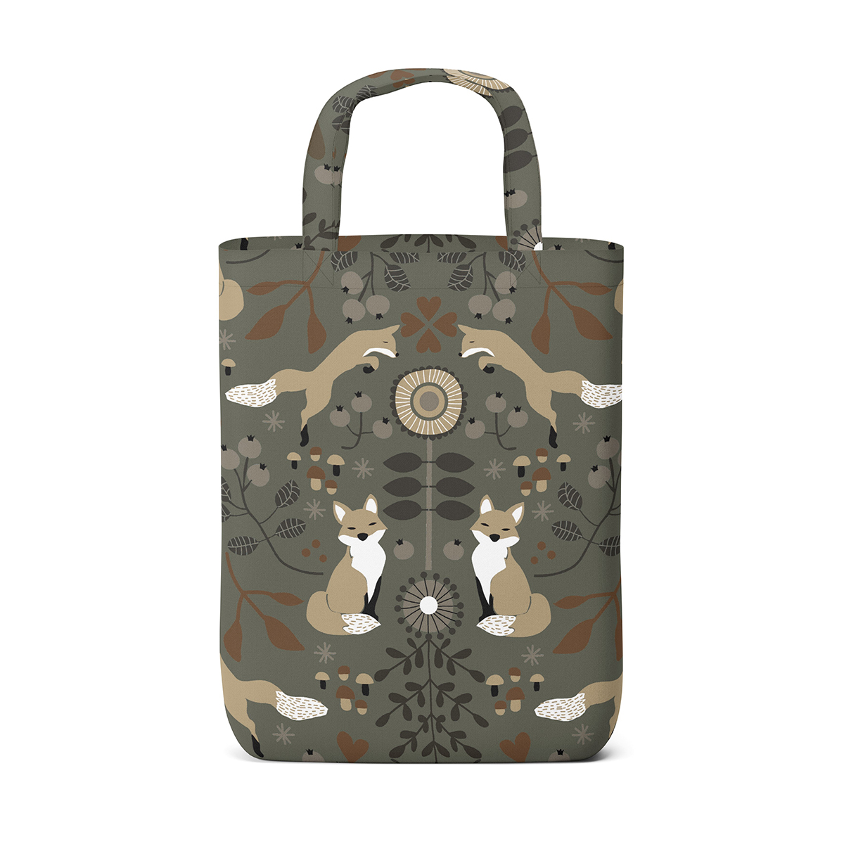 Tygpåse Arvidssons Textil Rävstigen är en snygg bomullskasse. Rävstigen är ett grafiskt småmönstrat tyg som passar bra till alla typer av produkter.
