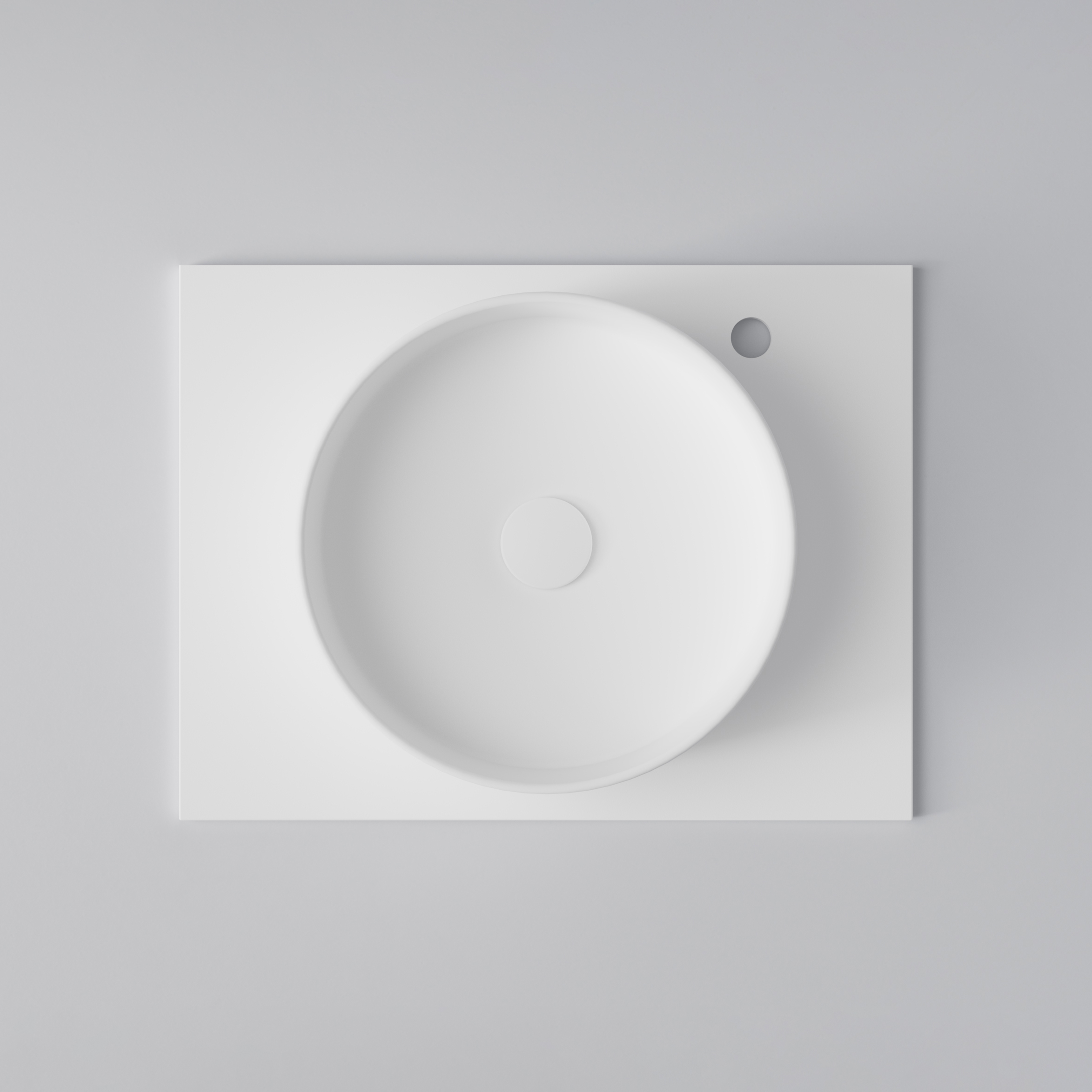 Solid surface är ett extremt slitstarkt industriellt framställt kompositmaterial. Den helt porfria och matta ytan känns varm vid beröring vilket är välkommet i badrummet.