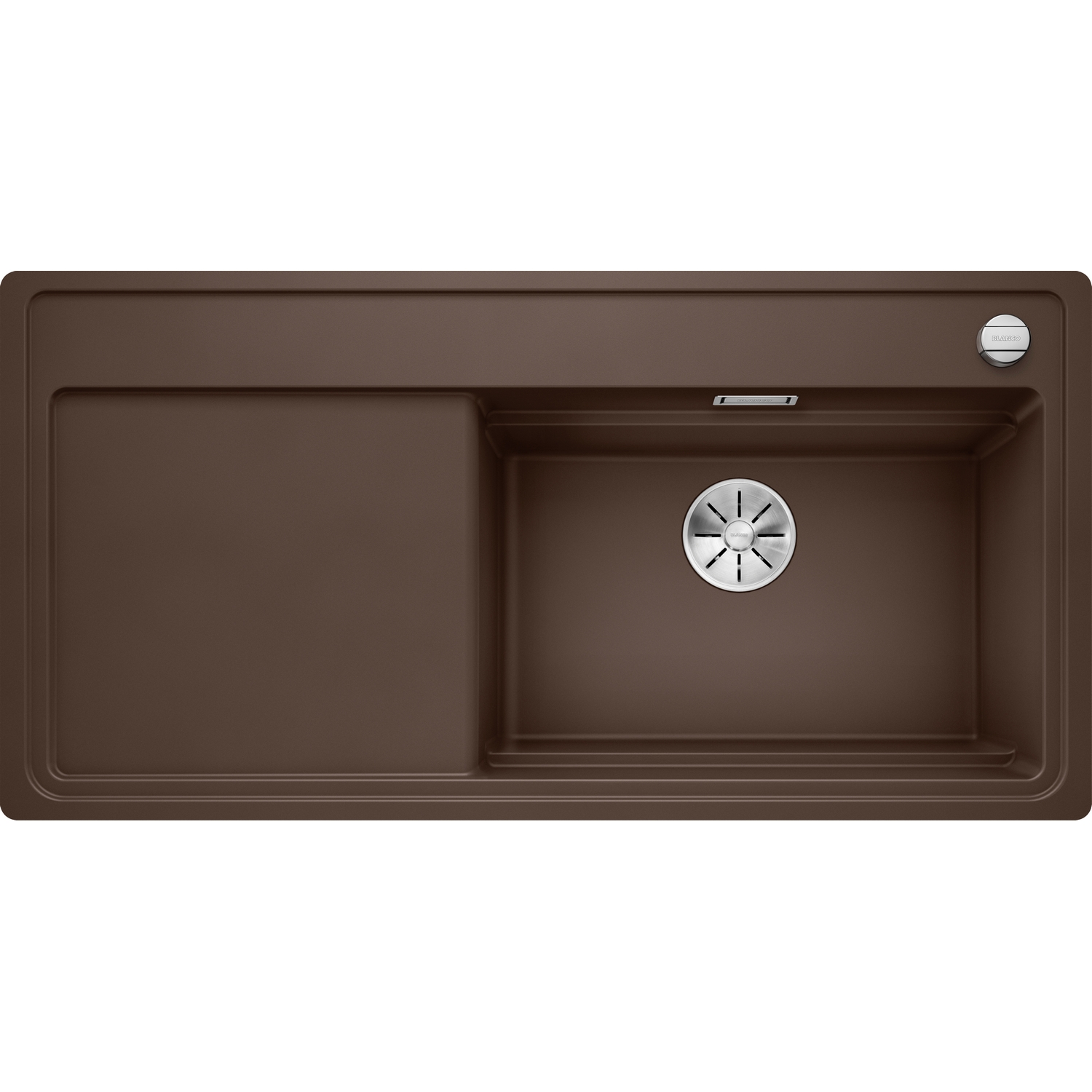 Detta är en multifunktionsdiskbänk med genomtänkt design och praktiska tillbehör. Diskbänken har en stor diskho med rymlig avrinningsyta i stilren utformning. Styrning av korgventilens öppning och stängning ovan bänk så att du slipper stoppa ner händerna i diskvattnet när du diskat färdigt. Dessutom har diskbänken Blancos patenterade InFino-avloppssystem.