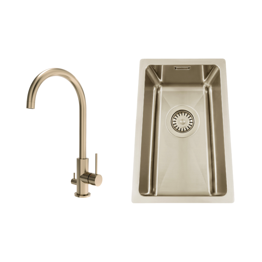 Disklåda Nordic Tech Titan 230 X med Köksblandare Steel Equip D är en kraftig disklåda i 1,2 mm rostfritt stål med snyggt borstad yta för min 300 mm skåp i kombination med en stilren köksblandare från Primy.