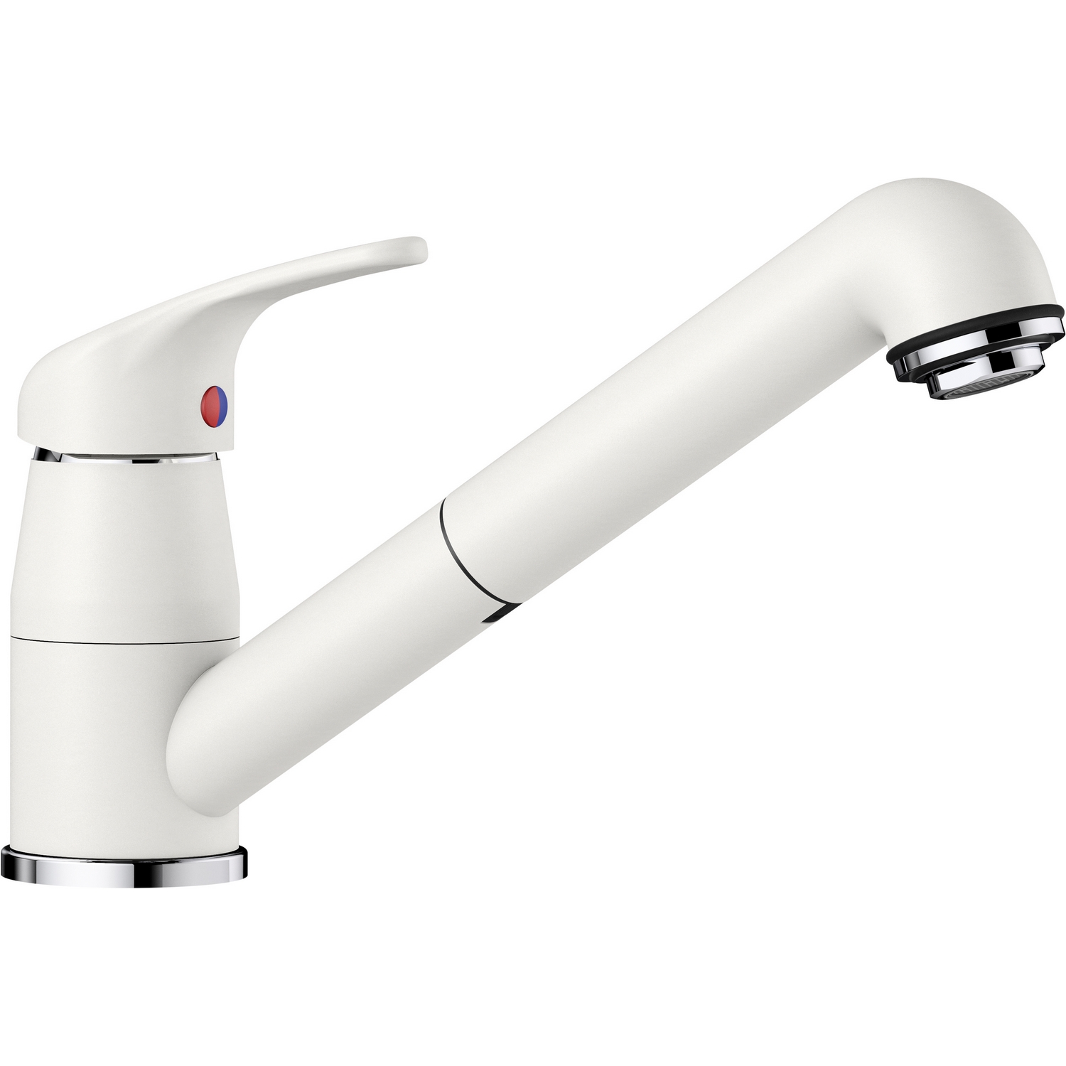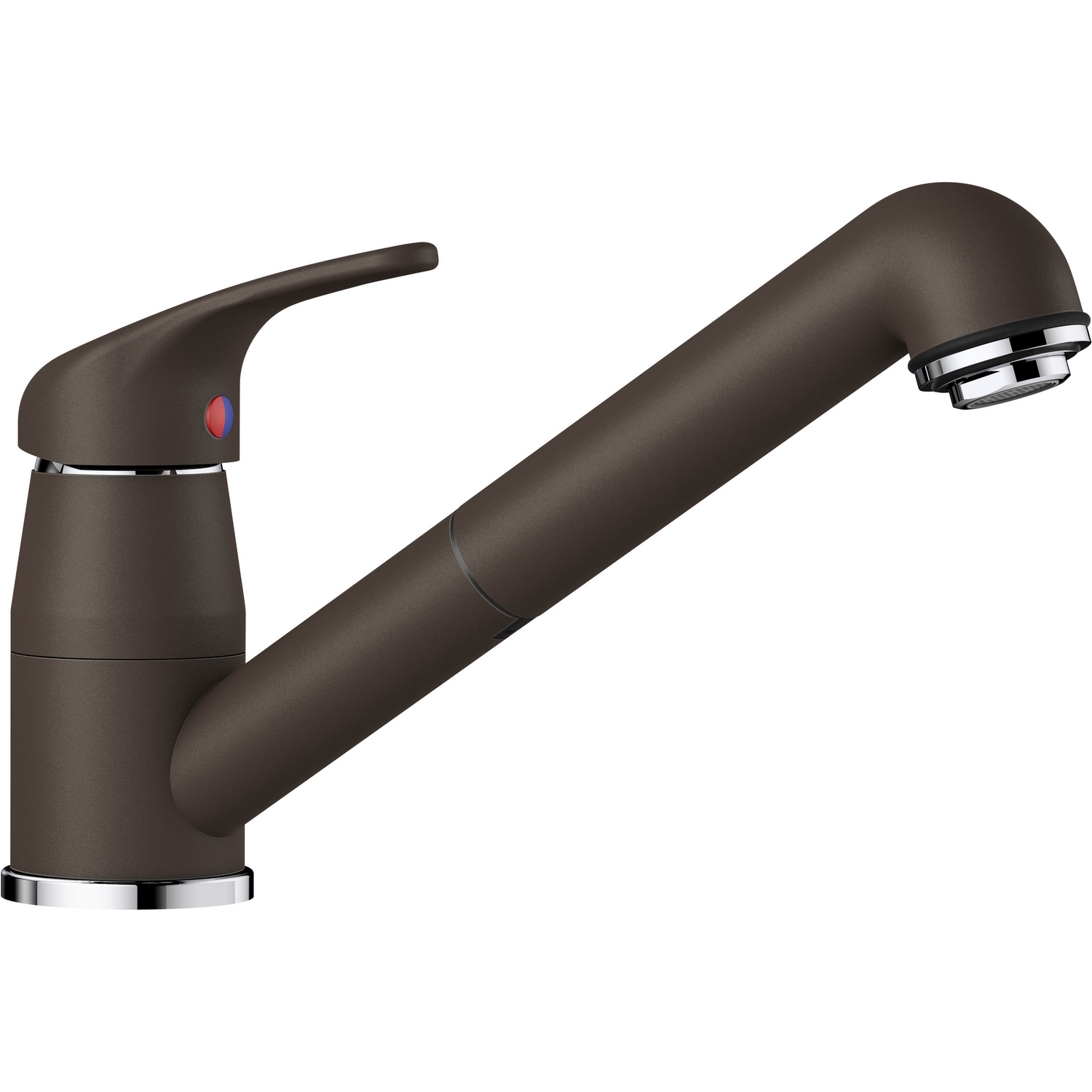 Köksblandare Blanco Daras S Silgranit är en klassisk köksblandare med utdragbart munstycke, ettgreppsvred, en lång pip och yta i silgranit. Den praktiska utformningen tillsammans med en svängradie på 90 grader ger god räckvidd i köket. Silgranit är ett mycket slitstarkt material som till 80% består av granit och 20% akryl.