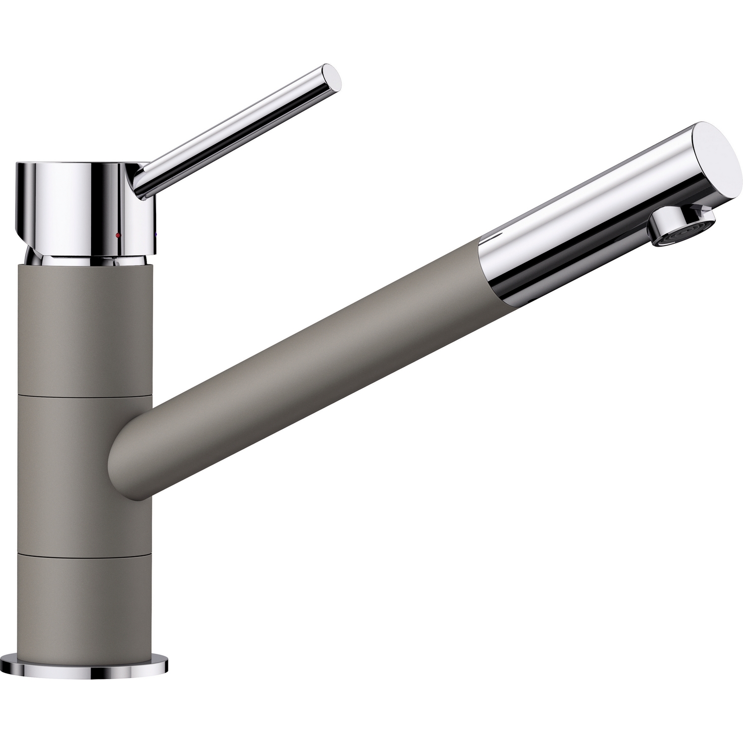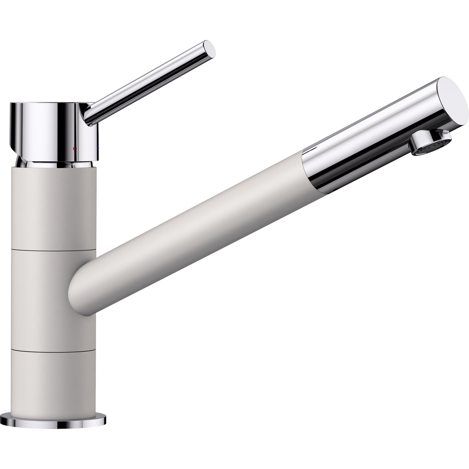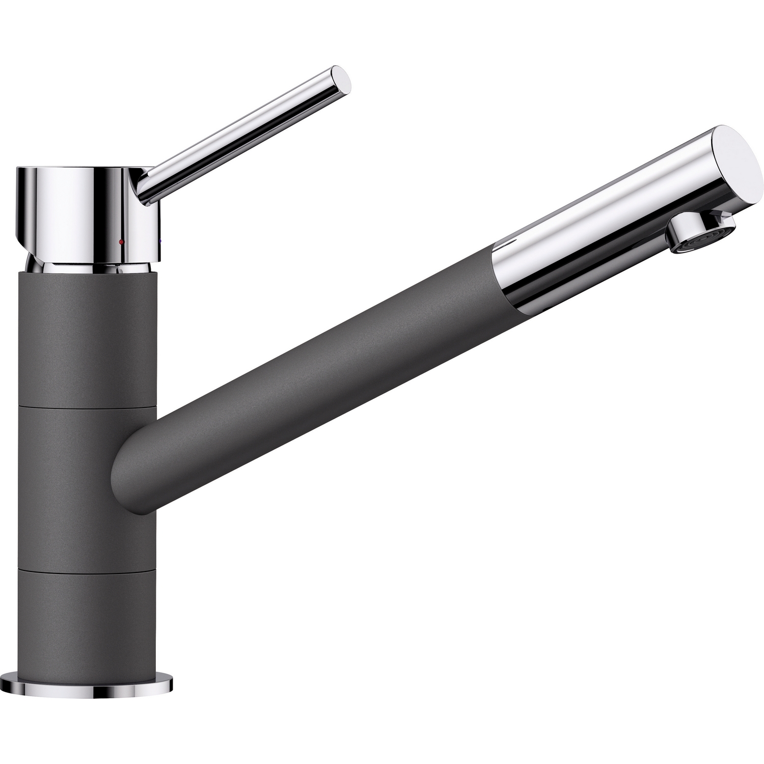Köksblandare Blanco Kano är en kompakt och praktisk köksblandare med ettgreppsvred ovanpå blandarkroppen. Den har en lång pip och en svängradie på 190 grader vilket ger god räckvidd i köket.