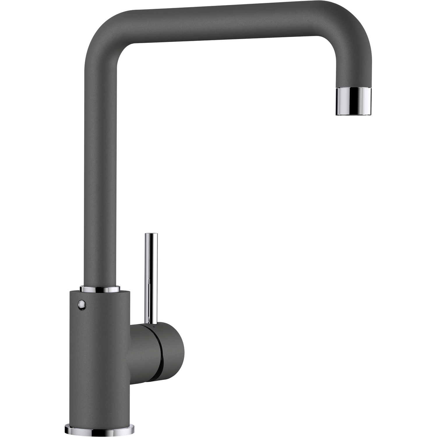 Köksblandare Blanco Mili Silgranit är en modernt utformad blandare med en smal kropp med en J-formad kran. Den har ett ettgreppsvred vid sidan av blandarens kropp, en hög pip och en svängradie på 360 grader vilket gör att du får stor räckvidd i köket.