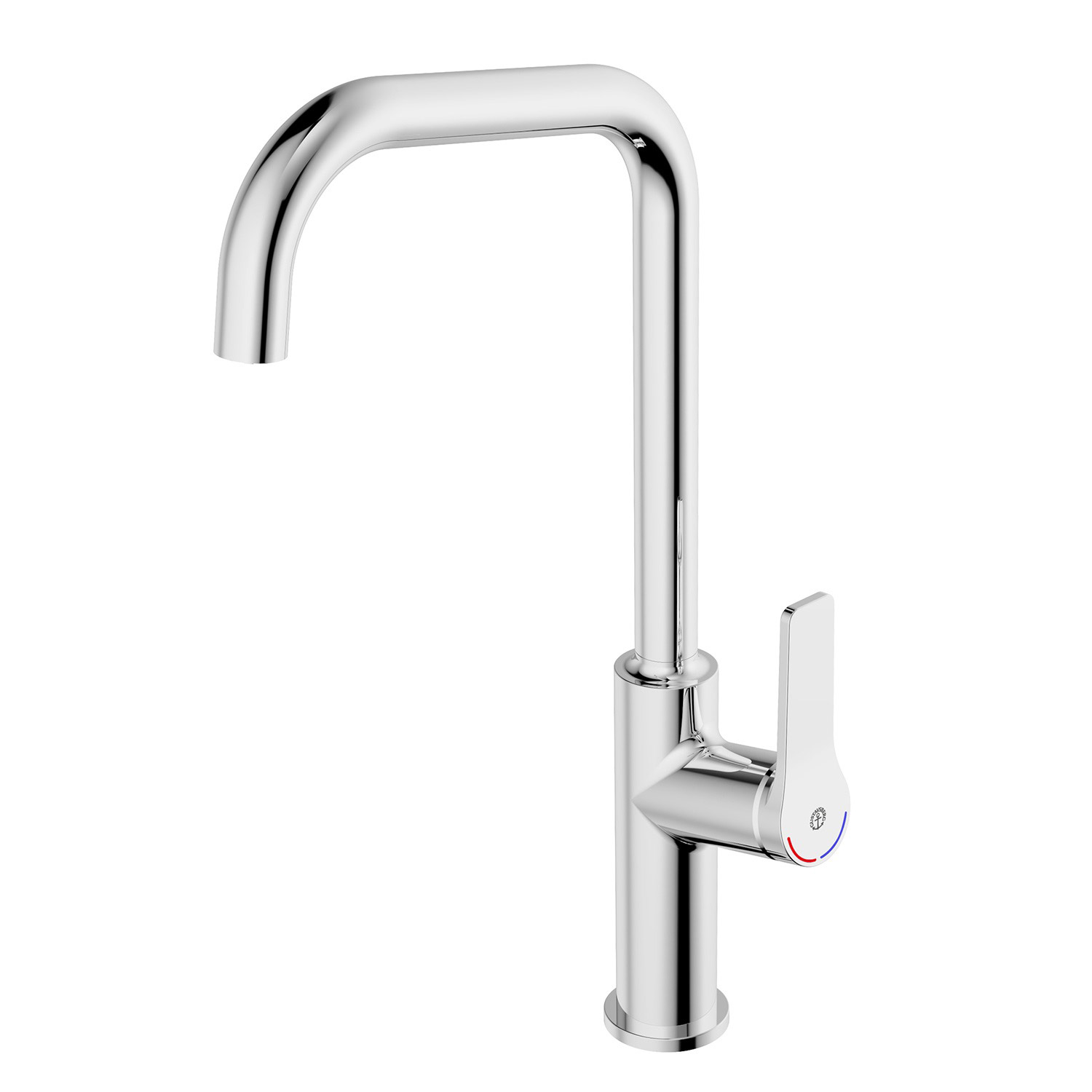 Köksblandare Epic från Gustavsberg är en stilren ettgreppsblandare med hög och svängbar L-pip (110°) som underlättar arbetet i köket. De cylindriska formerna samt den eleganta och moderna designen gör att den passar in i de flesta kök. Det användarvänliga greppen med Soft Move gör att det är enkelt och bekvämt att manövrera köksblandaren. Denna blandare har justerbar maxtemperatur för ökat skållningsskydd. Den är även utrustad med vattenbesparande funktionen Eco-flow och levereras utan diskmaskinsavstängning.