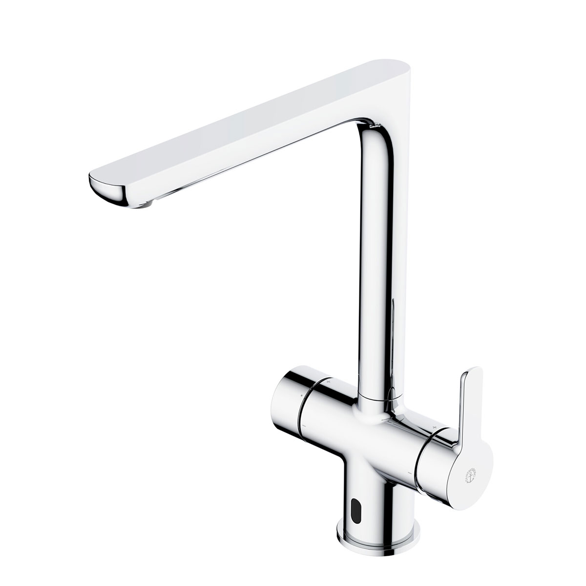 Köksblandare Gustavsberg Estetic Duo med Sensor har rena former, obrutna linjer och mjuka konturer kombineras med smart sensorfunktion. Smälter perfekt in i det moderna köket som en vacker detalj.