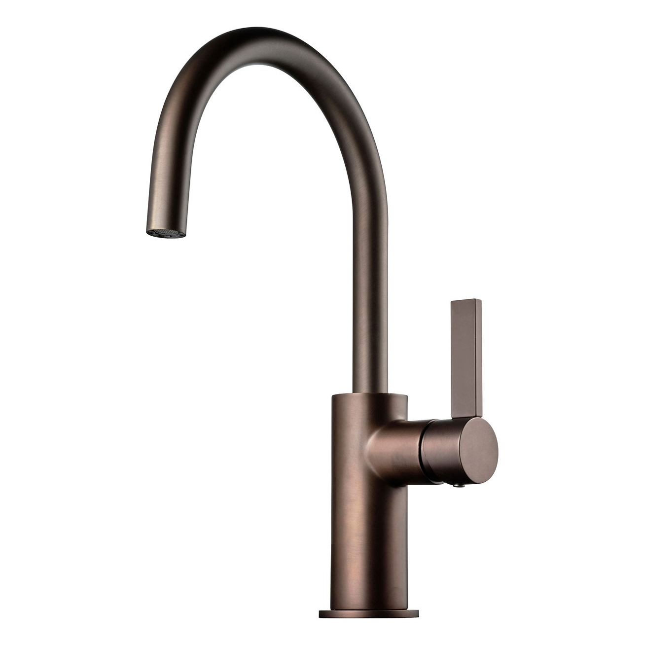 Köksblandare Tapwell ARM380 med rund svängbar pip. Pipens svängradie går att begränsa till mellan 60 och 270 grader med 15 graders intervaller.