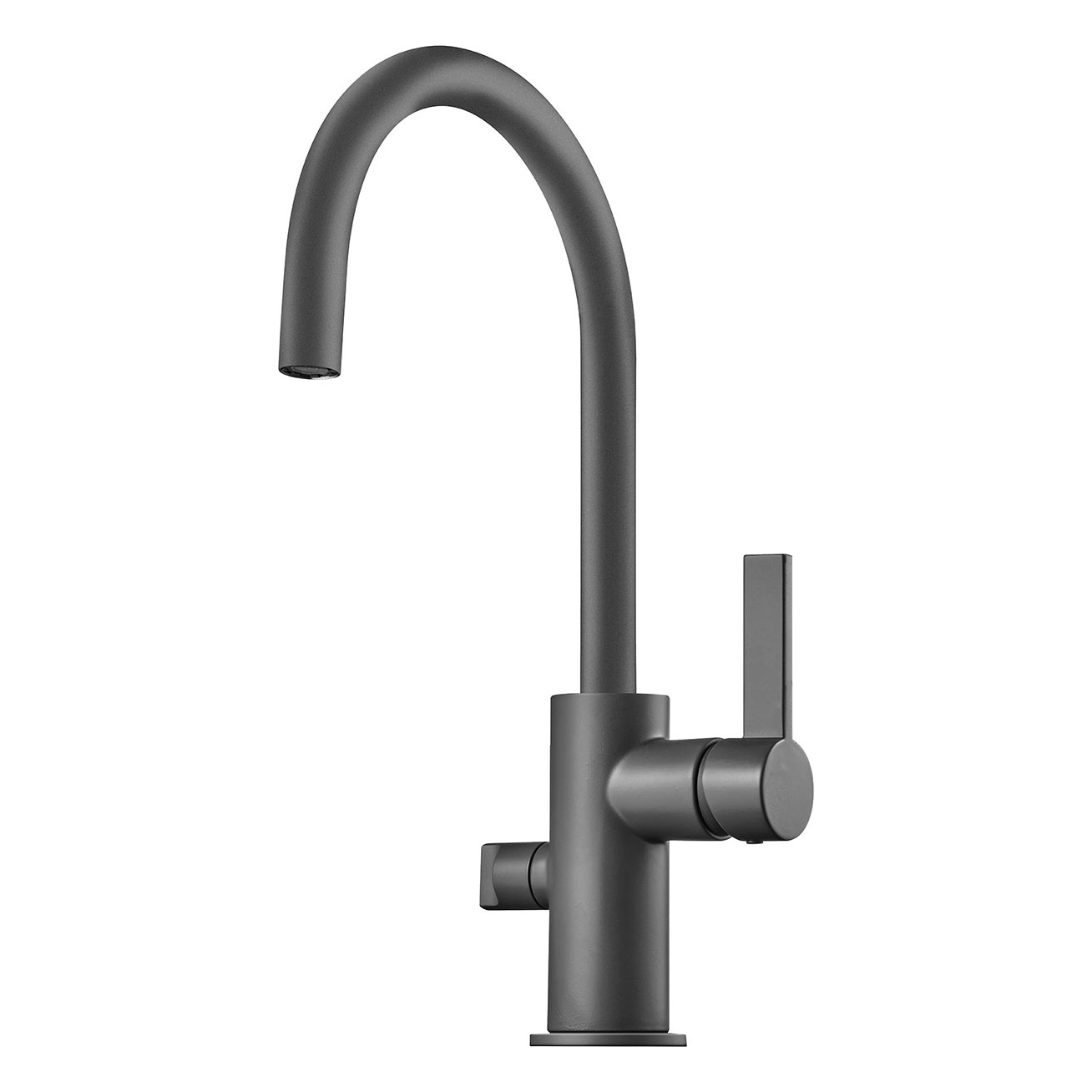 Köksblandare Tapwell ARM384 med diskmaskinsavstängning och vridbar pip. Pipens svängradie går att begränsa till mellan 60 och 270 grader med 15 graders intervaller.