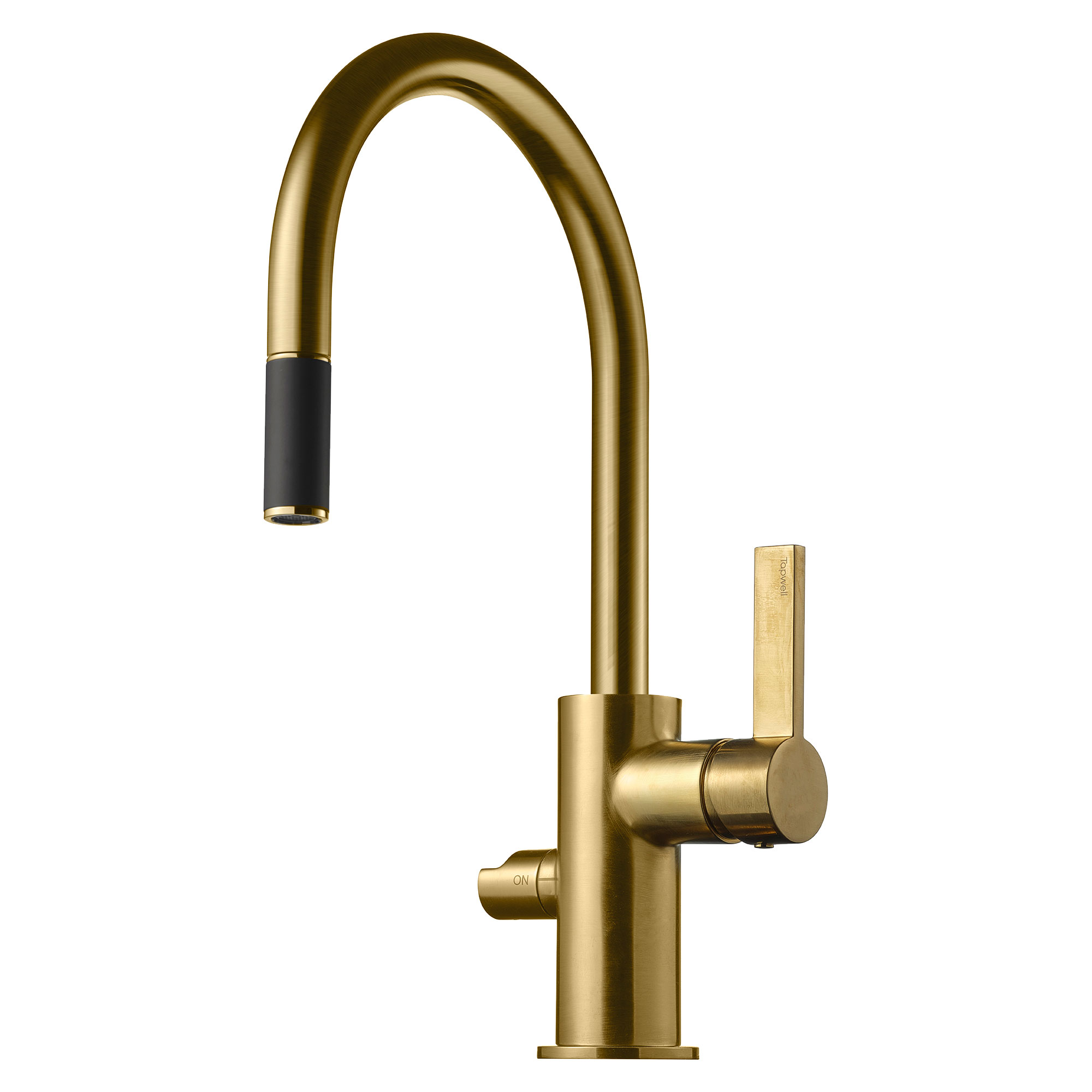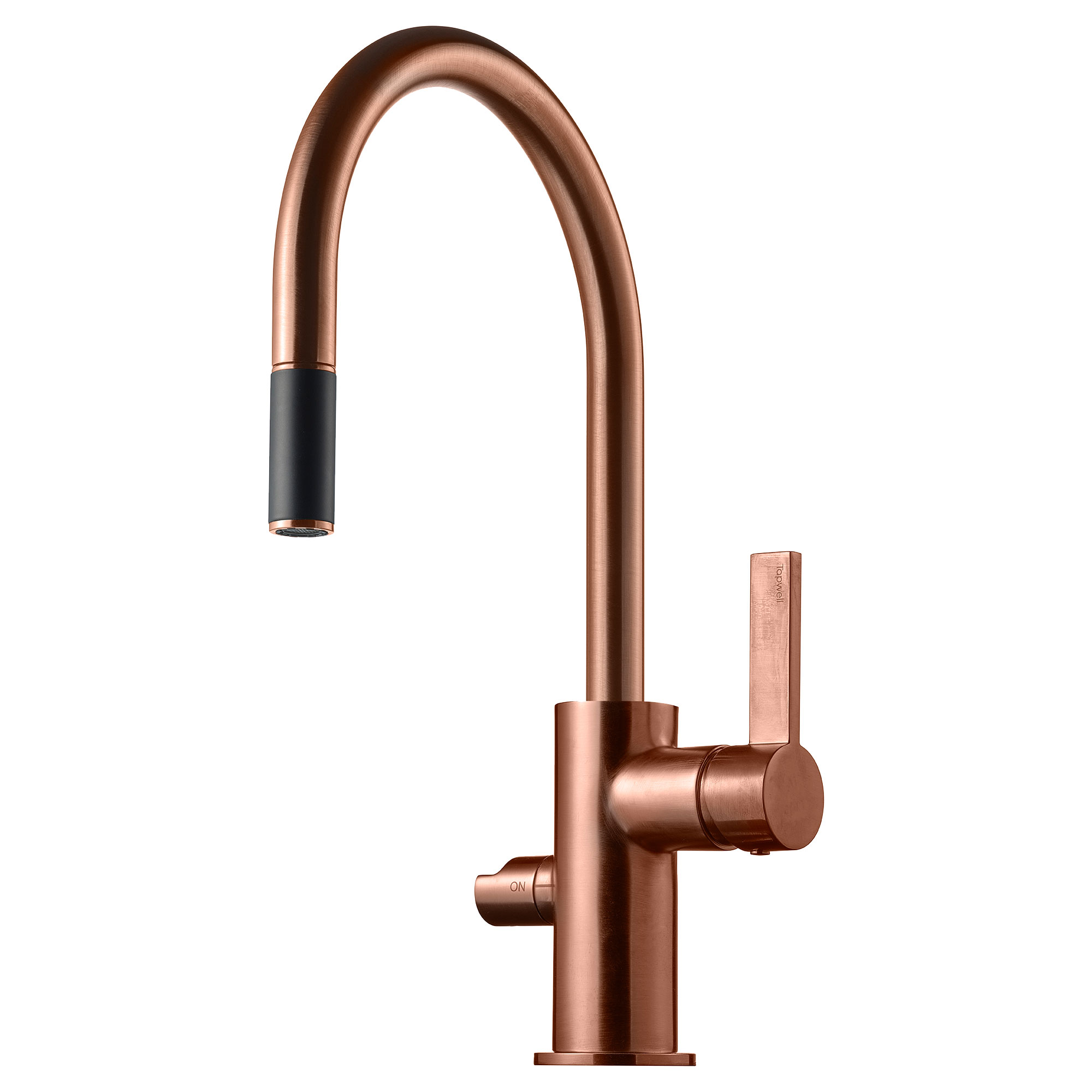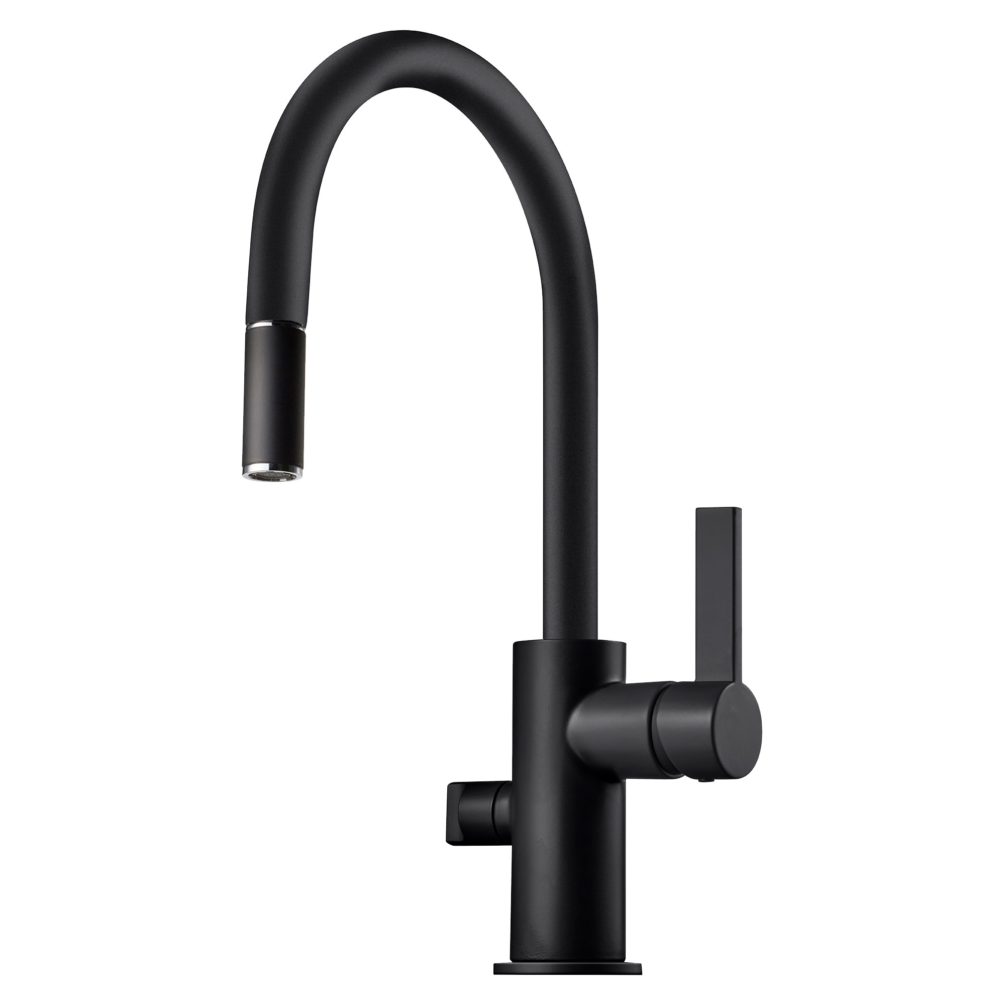 Köksblandare Tapwell ARM385 med svängbar pip, diskmaskinsavstängning och utdragbart munstycke. Pipens svängradie går att begränsa till mellan 60 och 270 grader med 15 graders intervaller. OBS - håltagning Ø40 mm.