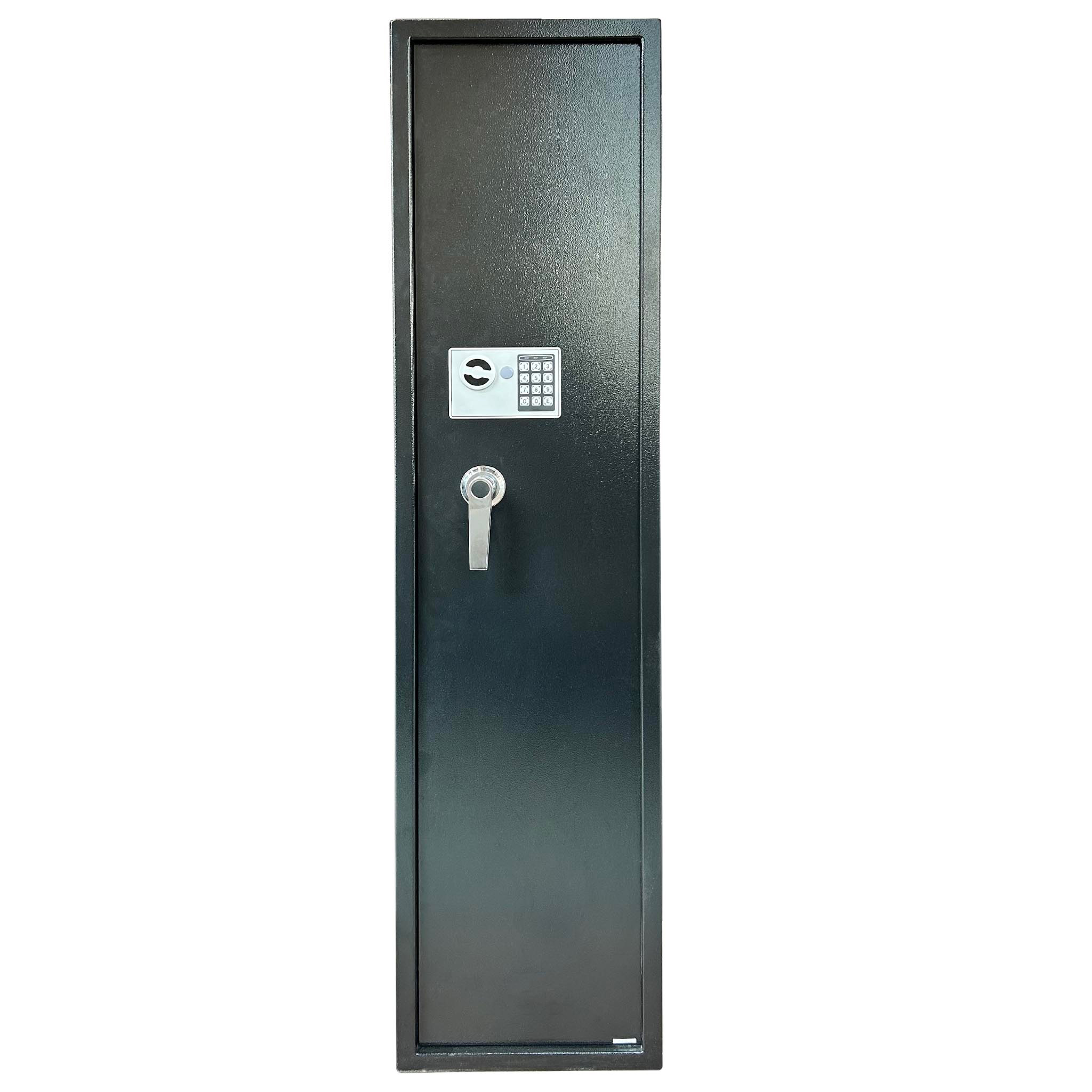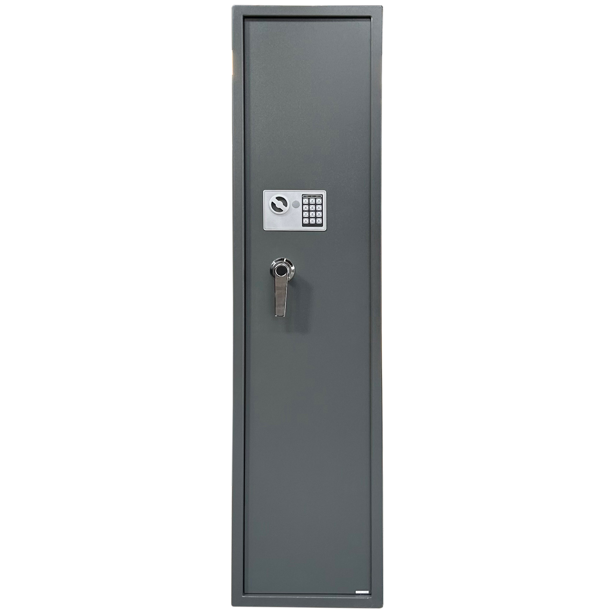 Med kapacitet att förvara 5 vapen, erbjuder detta skåp gott om utrymme för dina vapen, samtidigt som det bevarar en kompakt och effektiv design.