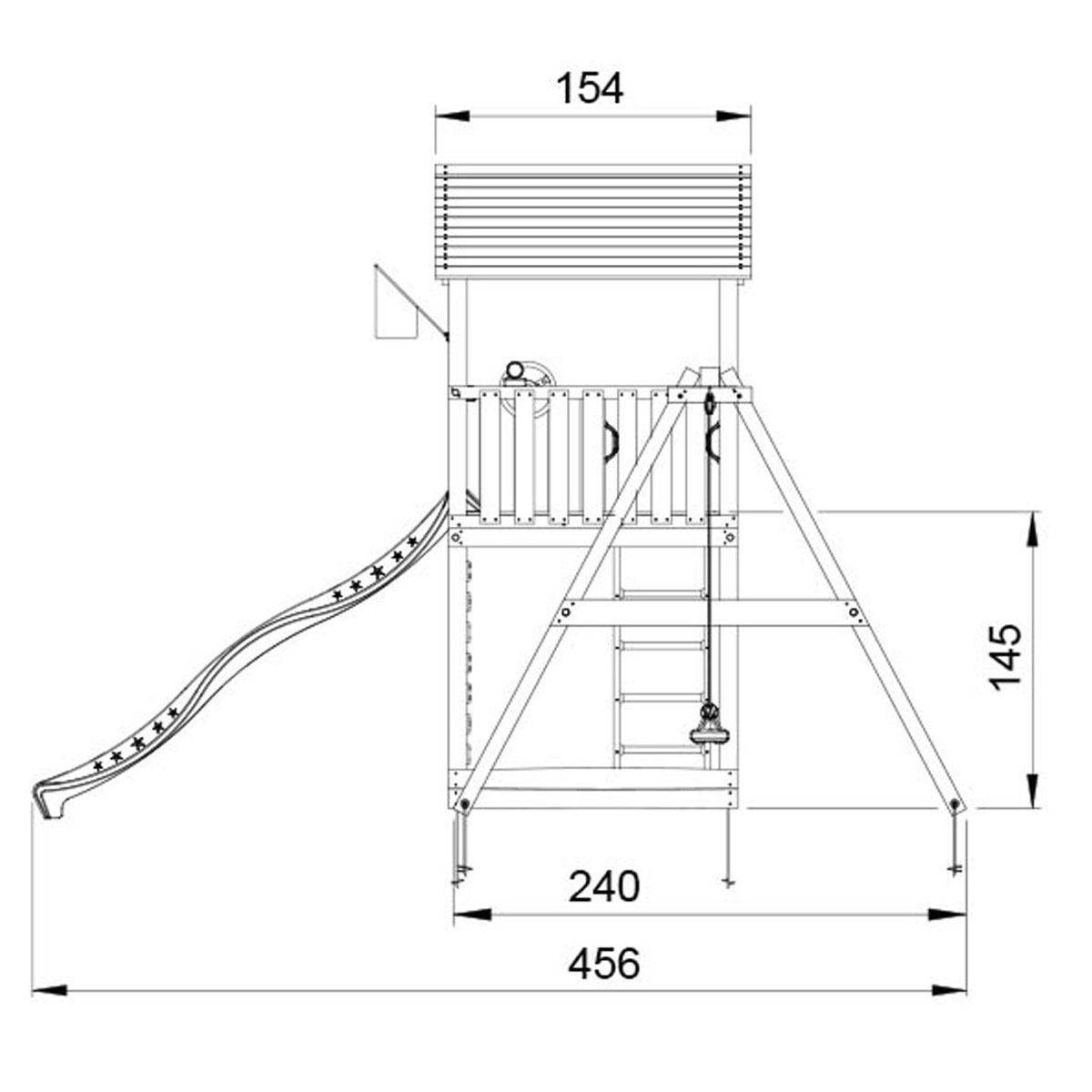Inklusive gungmodul med 2 gungor, stjärnkikare, Rockmodul, 5 st. klättersten, ratt, rutschkana 265 cm och sandlåda. Lektornet består av tryckimpregnerad furu. Testat och övervakat för kvalitet och säkerhet (enligt EN: 71-1, 2, 3, 8 & 9), CE-godkänd. Lektornet levereras som ett komplett montera-själv-paket i färdigsågade trälängder. Det är tungt och levereras därför till din adress med fraktbil.