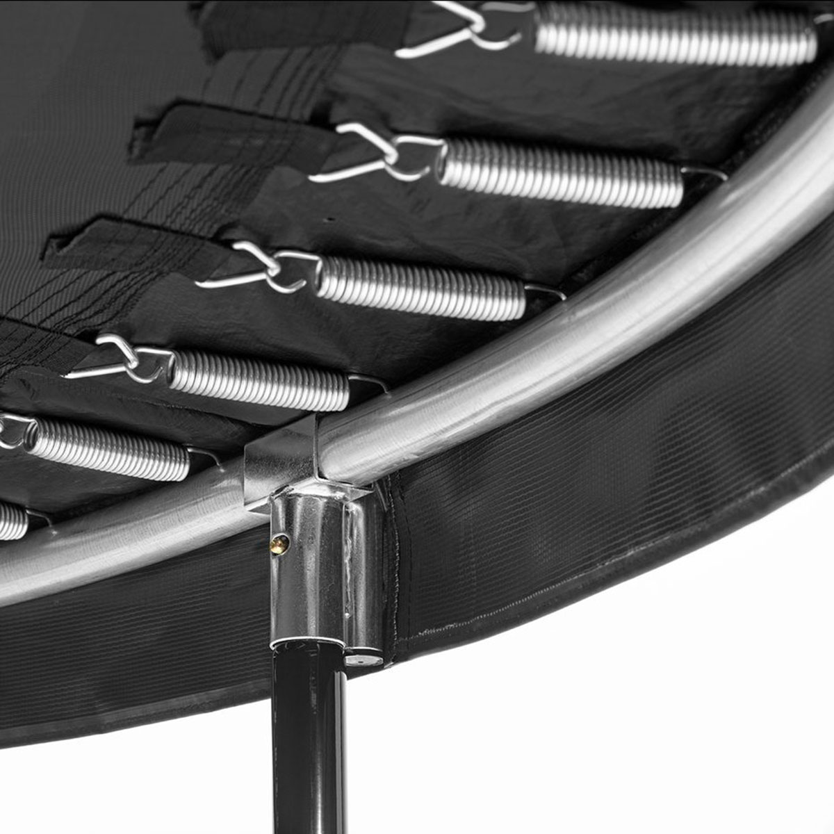 Comfort är en extraordinär studsmatta från Salta i snygg design som passar perfekt till alla omgivningar och är utvecklad i enlighet med de nyaste standarderna, vilket gör den extremt säker. Stålramarna i den slitstarka studsmattan är galvaniserade och försedda med en svart, blank beläggning. Konstruktionen av stålringen håller säkerhetsnätet i sin eleganta, formade position och det mjuka, finmaskiga nätet förblir stramt. Dessutom har studsmattan en 20 mm tjock och 29 cm bred skyddsmatta, så de dubbelförzinkade, koniska fjädrarna är helt avskärmade. Det dubbelsidiga blixtlåset ger enkel tillgång till studsmattan, så att du enkelt kan komma in och stänga.