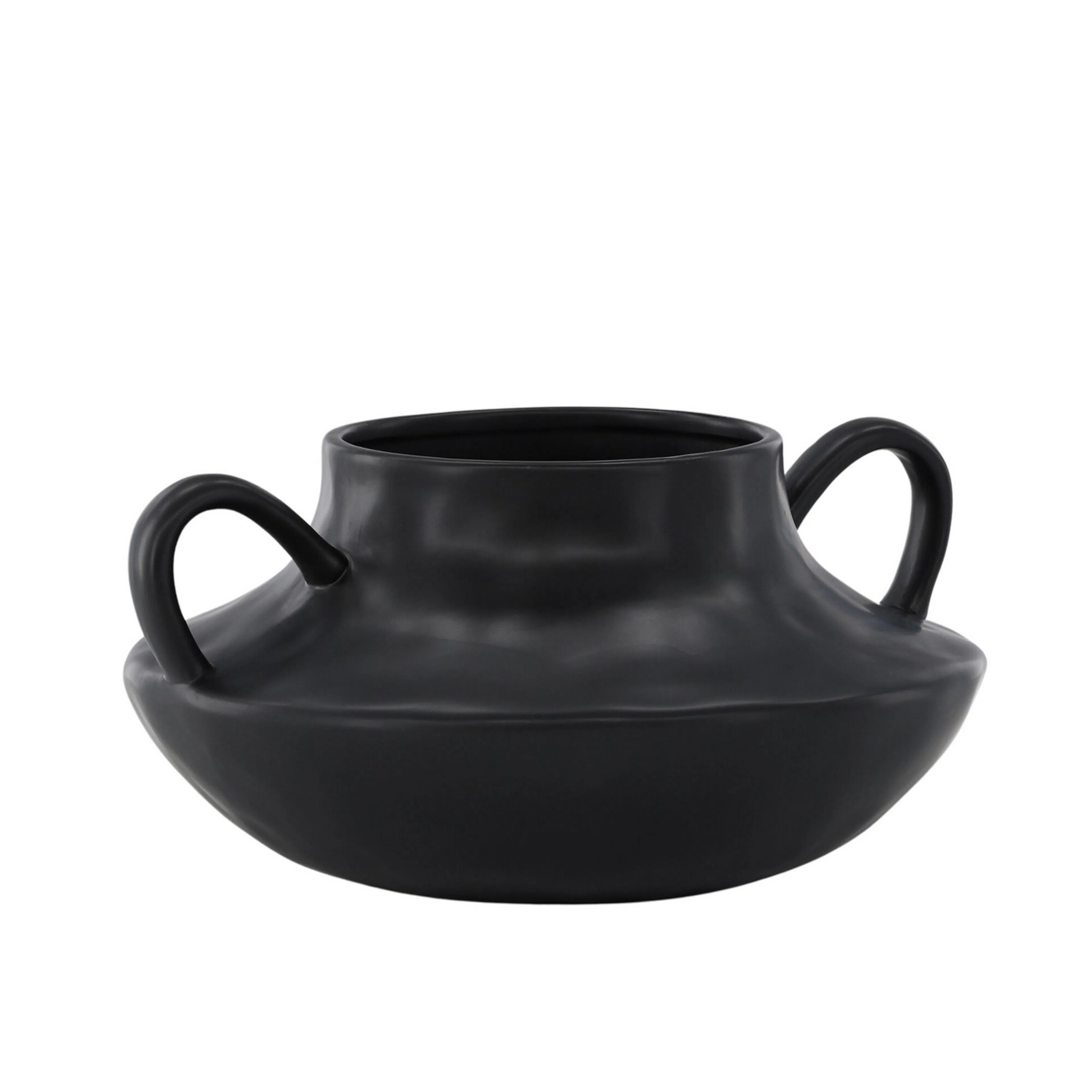 Med sin släta runda design och karakteristiska öglor på vardera sida kombinerar Holda form och funktion på ett sömlöst sätt. Den svarta ytan strålar elegans och gör den till en mångsidig tillskott till alla inredningsstilar. Plantera dina favoritblommor i Holda och placera den på bordet för att visa upp dess unika charm. Oavsett om den används som en fristående kruka eller som en del av en samling, ger Holda en touch av modernitet till ditt hem. Höj din inredning med denna stilrena svarta kruka och låt Holda vara det perfekta kärl för dina botaniska skönheter.