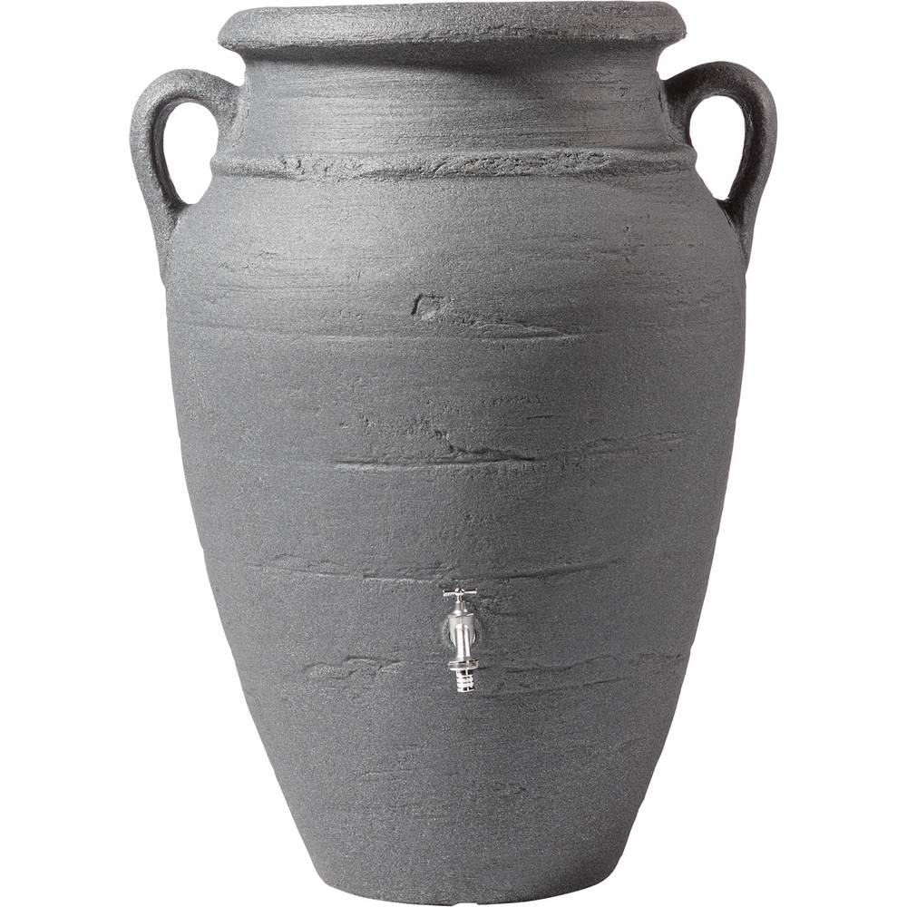 Regnvattentunna Garantia Antik fungerar som en elegant plantering och är en du inte vill gömma undan. Ställ den helt enkelt och gör den till en ny stilig samlingspunkt i din trädgård. Växtlådan är 20 cm djup och växtfleece ingår. Mässingsgängor är integrerade och monteringstillbehör och inloppstätning ingår. Plastmaterial är tillverkade av 100 % återvunnet material och varje regnvattentank är unik på grund av den speciella tillverkningsprocessen.