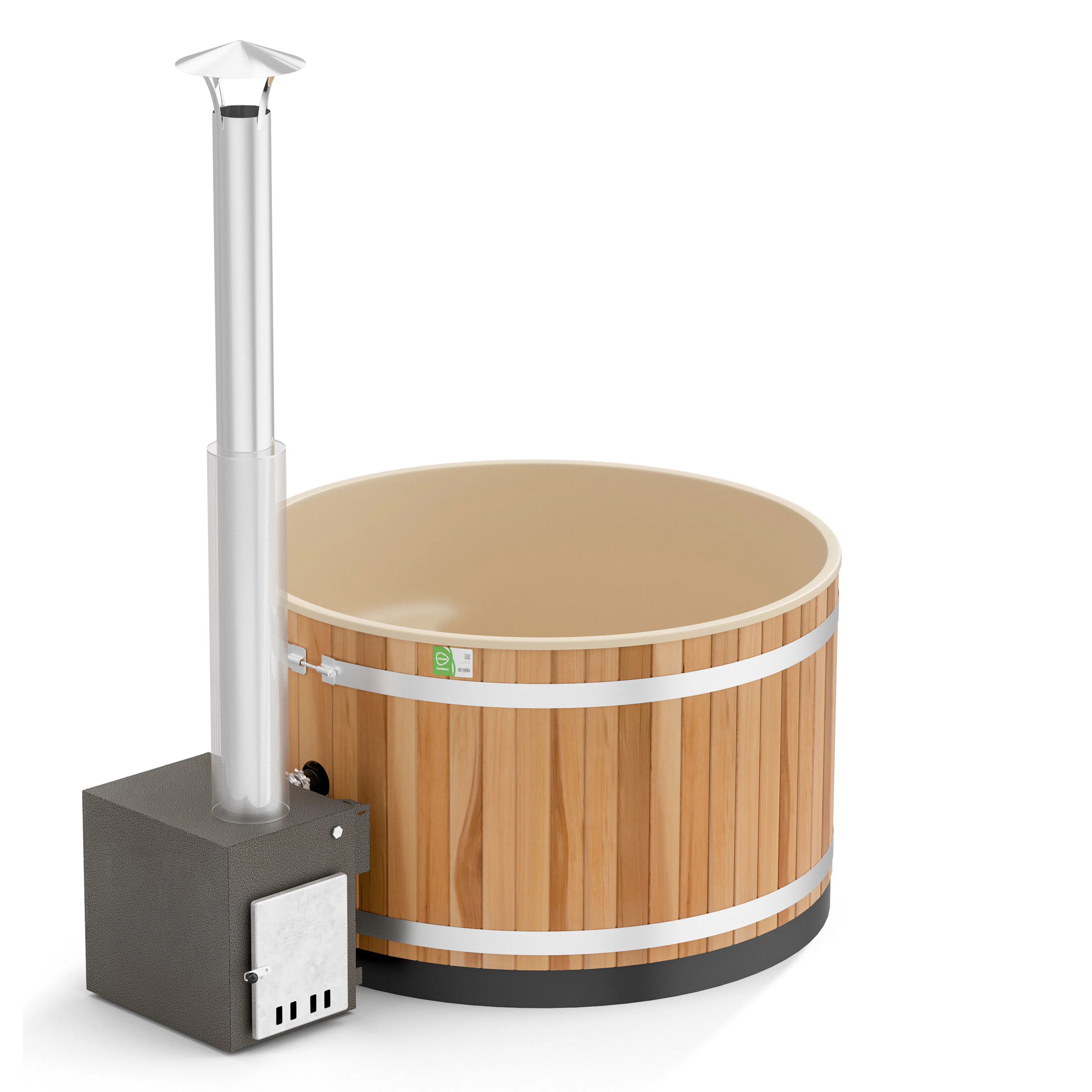 Med sin diameter på 170 cm rymmer den 4–6 personer. Den externa vedkaminen ger fullt badutrymme i hela badtunnan och värmer snabbt och bekvämt upp vattnet normalt på dryga 2-2,5h beroende på årstid. Runt Steady's överkant sveper plastinsatsen vilket ger en bekväm enhetlig sarg i samma slitstarka material som helt skyddar ytterpanelernas övre ändträ. Ryggen i badtunnan har en bekväm svag lutning bakåt och sitsens framkant har en mjuk avrundning med ett ordentligt benutrymme framför. Enkel och snabb installation.