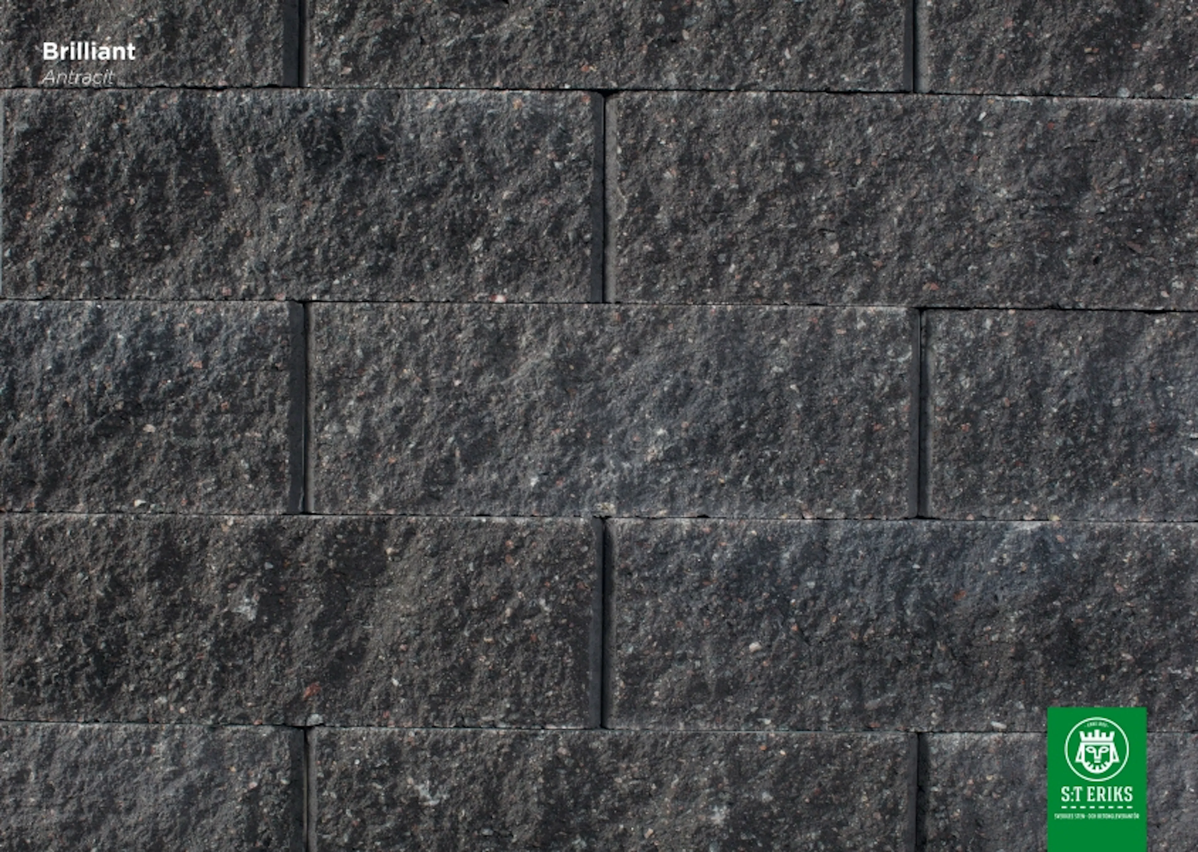 Brilliant är ett stödmursblock med rakklippt front. Muren går att bygga på två sätt, med svag bakåtlutning (4°) eller utan bakåtlutning (0°).Om lutning önskas används en distans.
