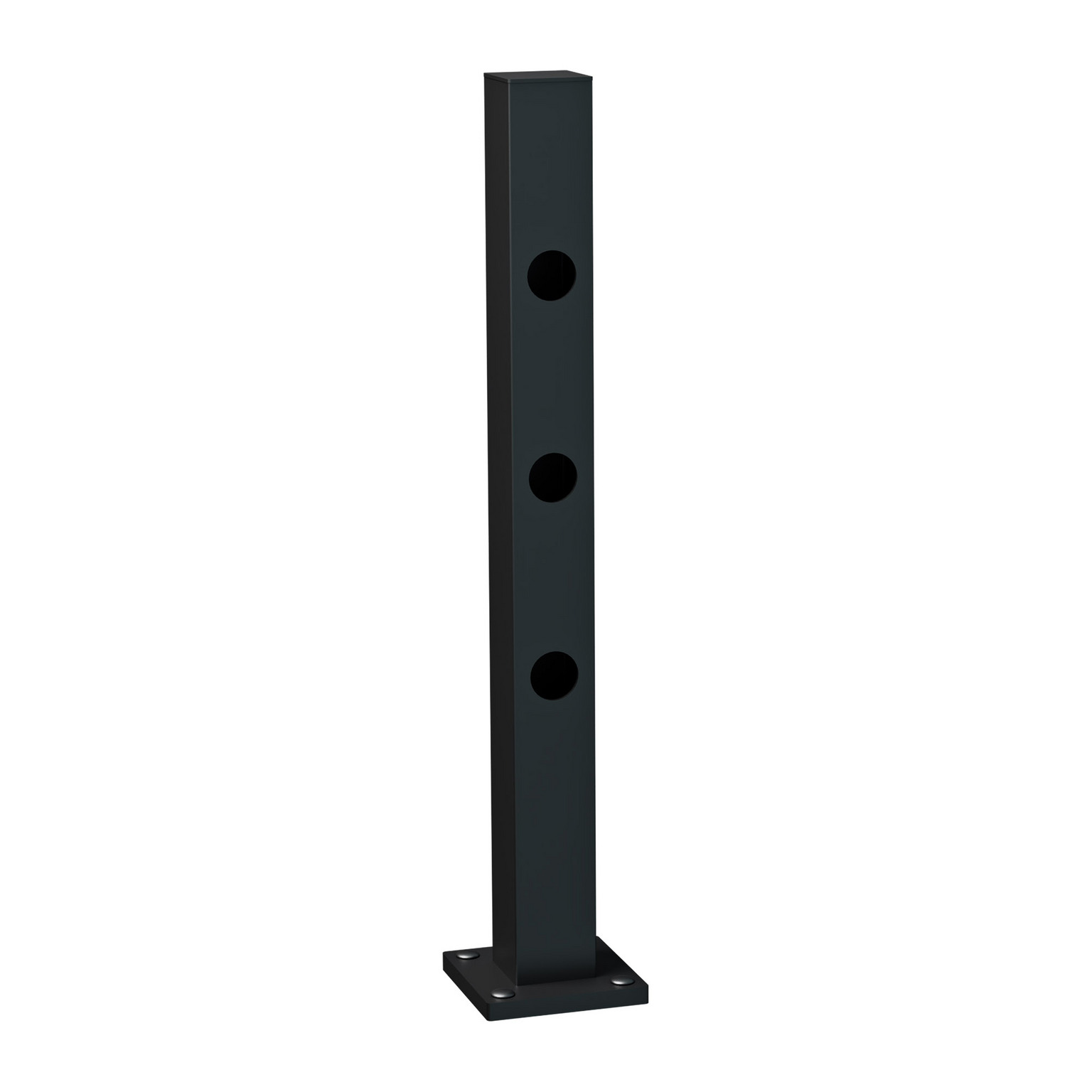 Avståndet mellan marken och första regeln är 24 cm. Avståndet mellan reglarna är 12 cm. Hålen är 41x41 mm. Tänk på att beställa rätt stolptyper för ditt ändamål (mellanstolpar, hörnstolpar, ändstolpar). Stolphatt går att få i svart plast eller av aluminium i valfri kulör.