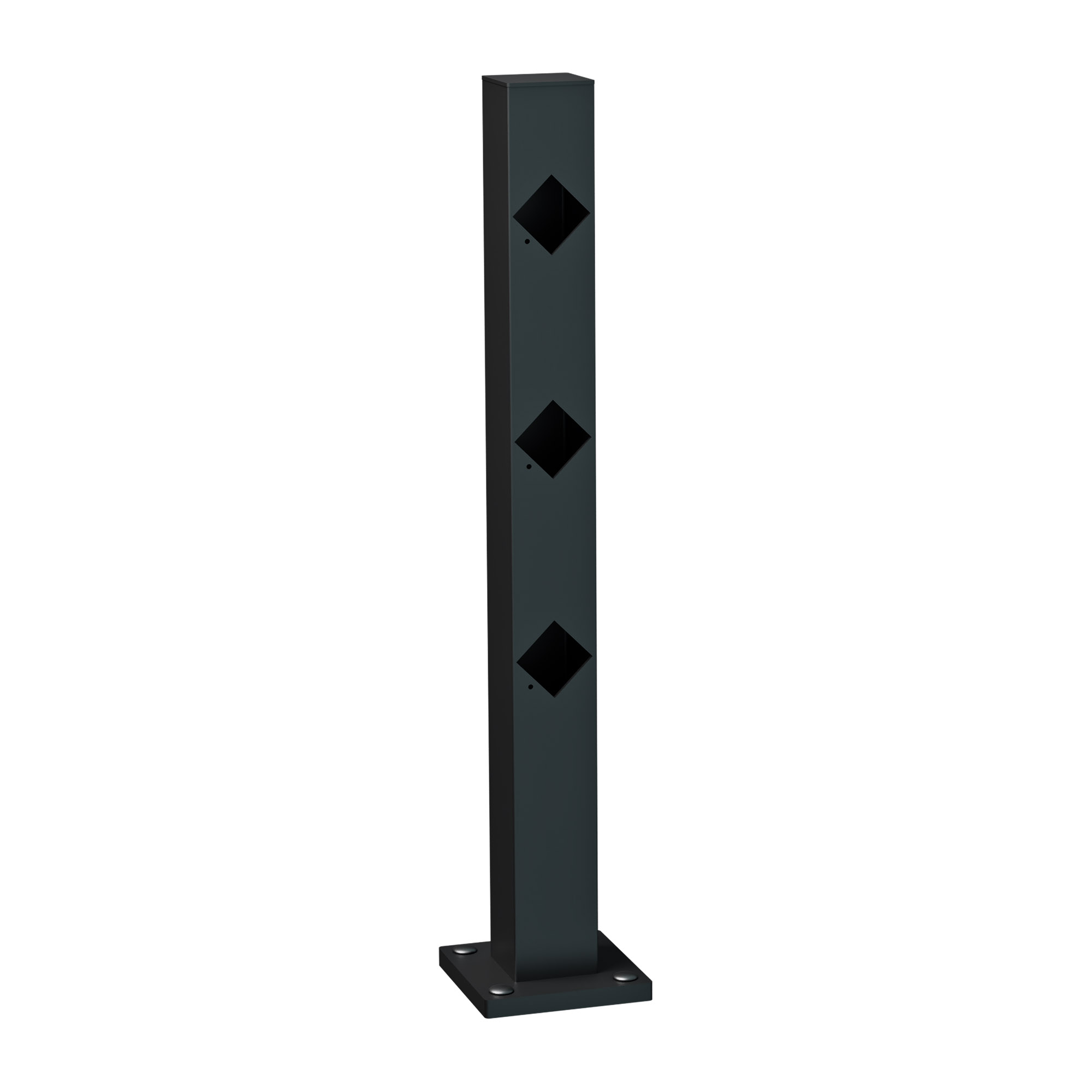Avståndet mellan marken och första regeln är 24,5 cm. Avståndet mellan reglarna är 12,5 cm. Hålen är 45x45mm. Tänk på att beställa rätt stolptyper för ditt ändamål (mellanstolpar, hörnstolpar, ändstolpe) Stolphatt går att få i svart plast eller av aluminium i valfri kulör. Glöm inte att beställa en stolpfot till varje stolpe. Köp valfritt obehandlat virke 45x45mm hos din lokala bygghandlare. Måla sedan i valfri kulör. Säkerställ att virket inte har svällt för mycket (det försvårar monteringen).