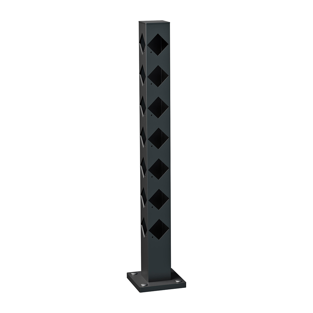 Gedigna stolpar i aluminium som passar både som altanräcke och regelrätt staket. Det är dessutom enkelt att montera – du behöver bara impregnerat virke med standardmåttet två tum två. För komplett produkt, beställ till Stolpfot, Stolphatt samt monteringskruv för trä.