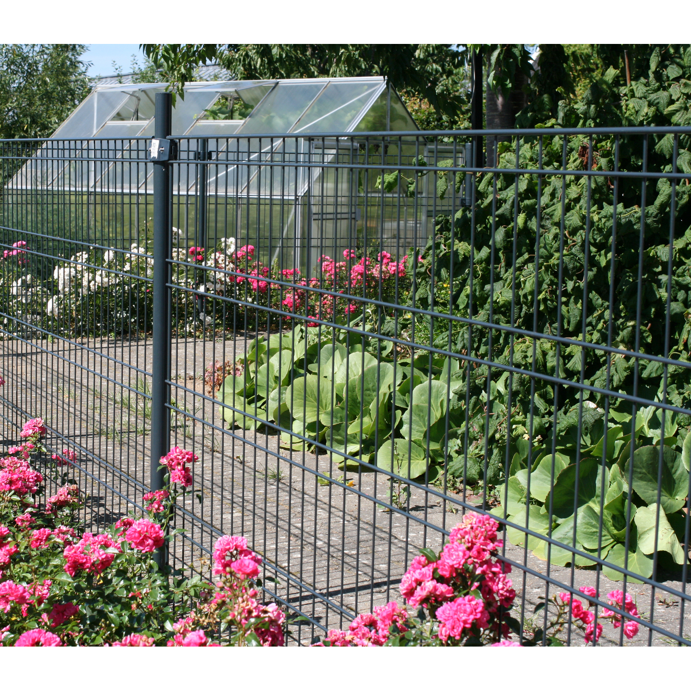 Panelstängsel 100 cm grön, stängselset 8 moduler. Panelstängslet har en längd på 200 cm och en höjd på 100 cm och är tillverkat av grön, plastbelagd, galvaniserad tråd.De lodrätta trådarna är 4 mm, och de vågrätta är 6 mm.Stolpen till panelstängslet har en längd på 150 cm och en diameter på Ø34 mm med en plasthätta.Grinden har en längd på 118 cm och en höjd på 103 cm. Grinden till panelstängslet består av följande:2 x Ø6 x 150 cm stolpar1 x grind1 x lås med 3 nycklar inklusive handtag2 x staplar2 x stolphättor Ø60 mm2 x stolphättor Ø40 mmBåde stängsel, grind, beslag och stolpar levereras i färgen (RAL6005) grön.Panelstängslet kan användas till inhägning av trädgårdar, sommarstugor, hundgårdar och liknande. Det kan även användas till att skärma av träd.Detta set innehåller följande: 8 x panelstängsel 200 x 100 cm8 x stolpar 150 cm, diameter Ø34 mm1 x grind 118 x 103 cm14 x dubbelbeslag Ø34 mm4 x enkelbeslag Ø34 mm 4 x enkelbeslag Ø60 mm