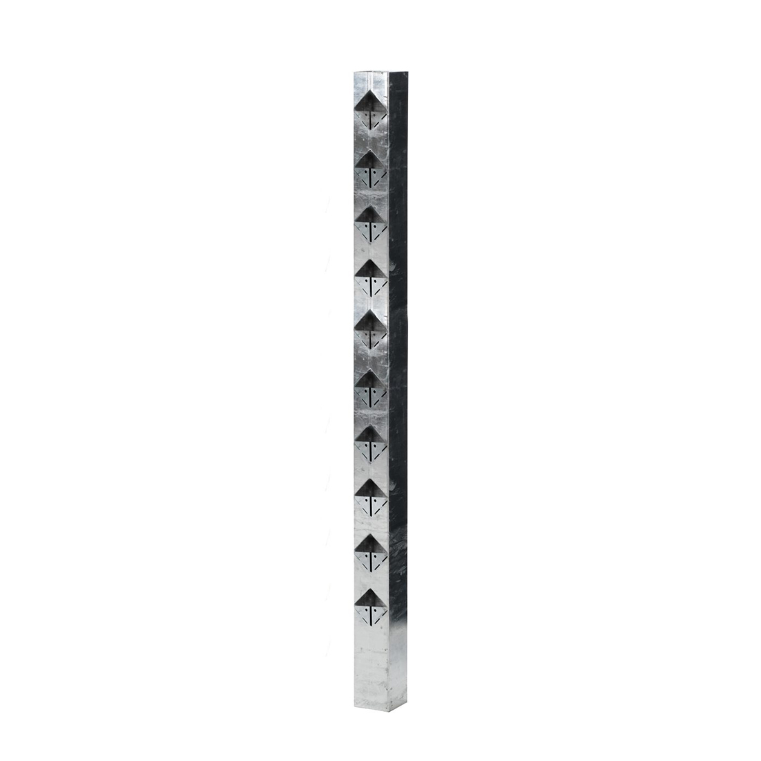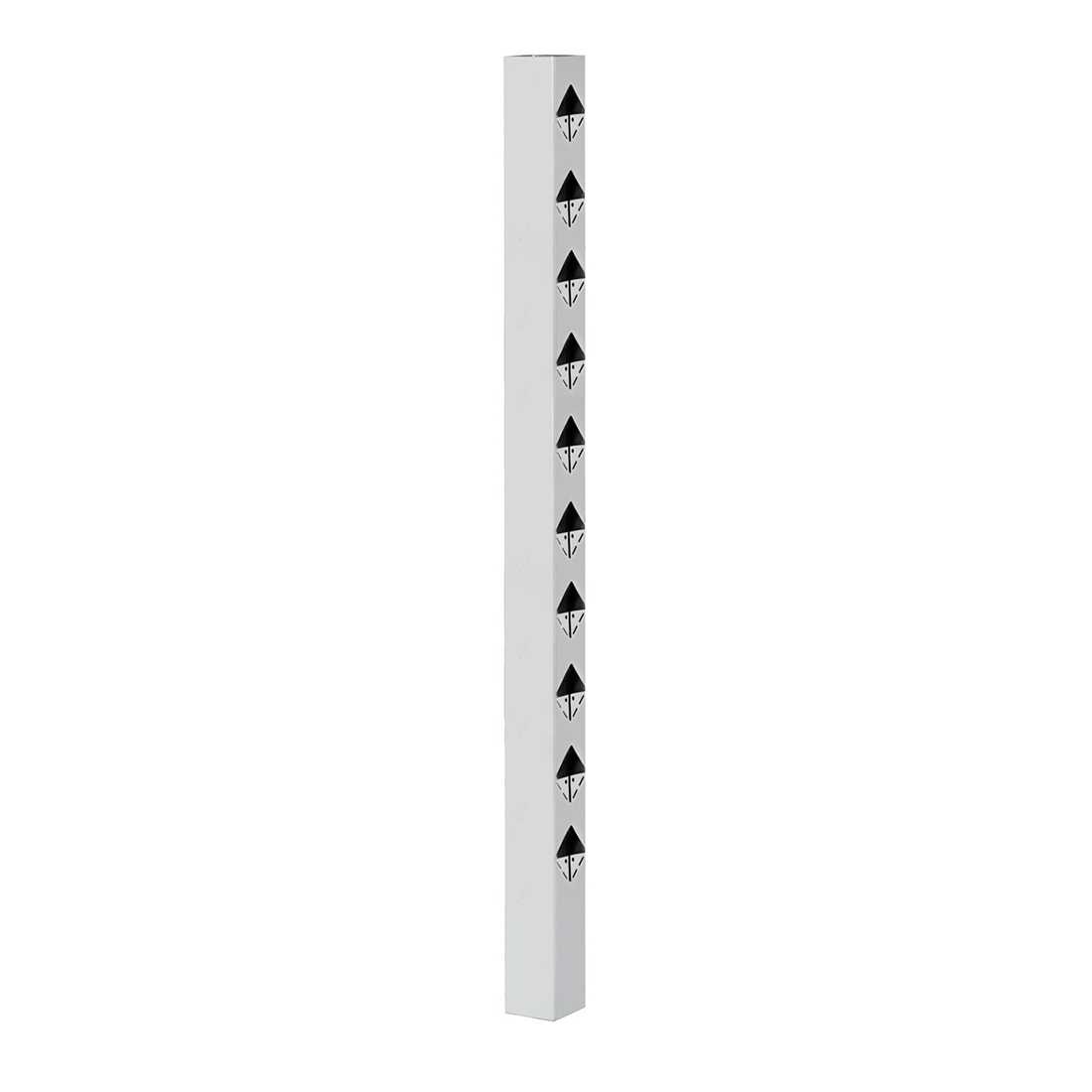 Stolparna mäter 70x70 mm och har laserskurna hål som passar 45x45 mm virke. Montera med tryckimpregnerade reglar eller måla/lasera obehandlat virke innan montering för underhållsfritt och stilrent staket i många år framöver.