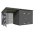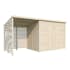 Leif är en praktisk förråd med utbyggnad för förvaring av trädgårdsredskap, gräsklippare, trädgårdsdynor etc. Förrådet är tillverkat av prefabricerade väggelement och är enkelt att montera. Dubbeldörrar på framsidan gör det enkelt att ta in större föremål som trädgårdsmaskiner och trädgårdsmöbler. Praktisk sidobyggnad för förvaring av t.ex. ved, cyklar etc. Levereras som byggsats inklusive golv och alla infästningar.