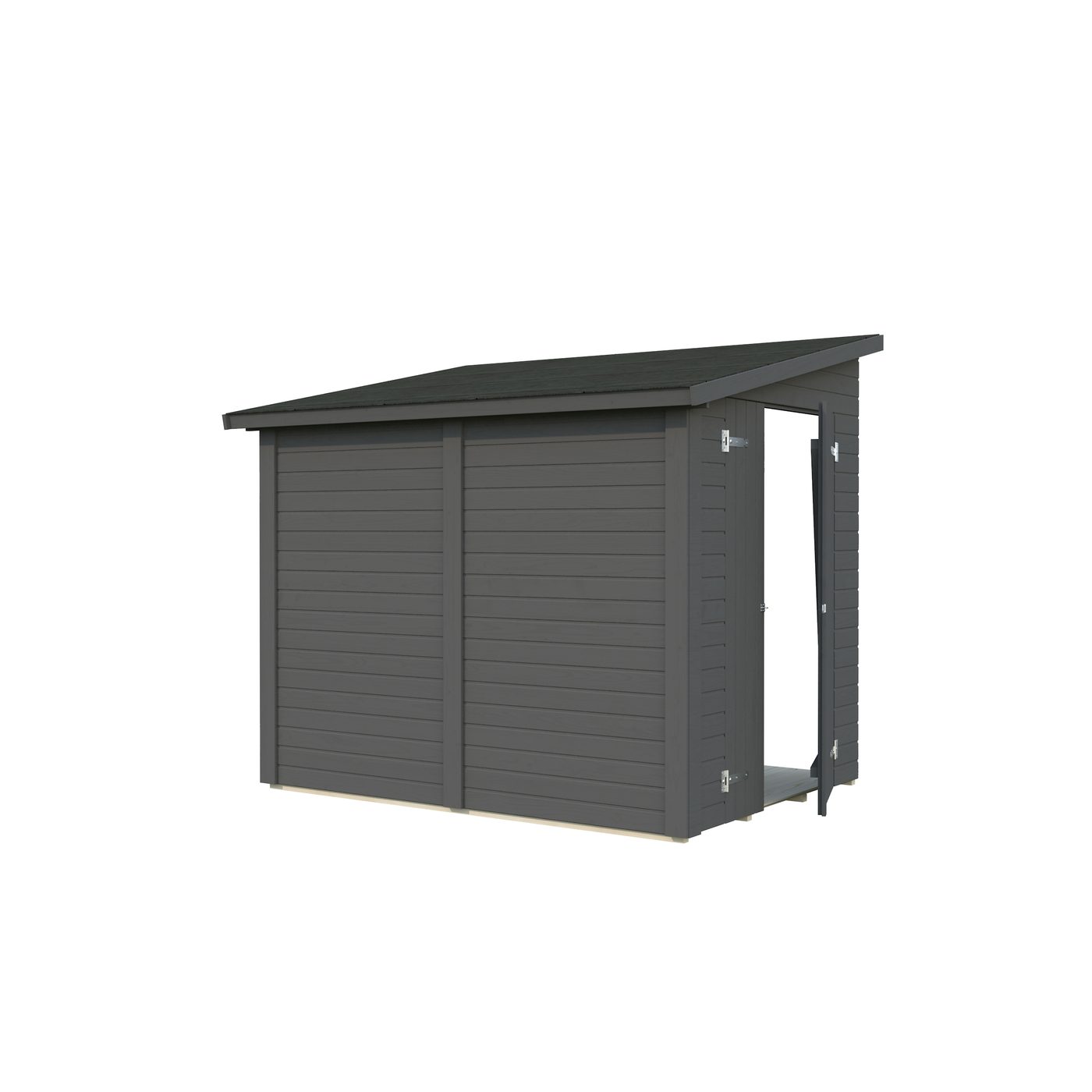 Förråd Mia från Palmako av 16 mm tjocka prefabricerade väggblock och en enkel pardörr. Mia är ett litet praktiskt förråd som du placerar mot en befintlig vägg. Med denna lilla redskapsbod skapar du på ett smidigt sätt extra utrymme för dina sportartiklar, trädgårdsredskap eller uteleksaker. Den enkla designen gör att förrådet kan placeras och anpassas för att smälta in i den befintliga miljön. Stugan är inte snözonklassad - håll därför taket rent från större mängder snö.