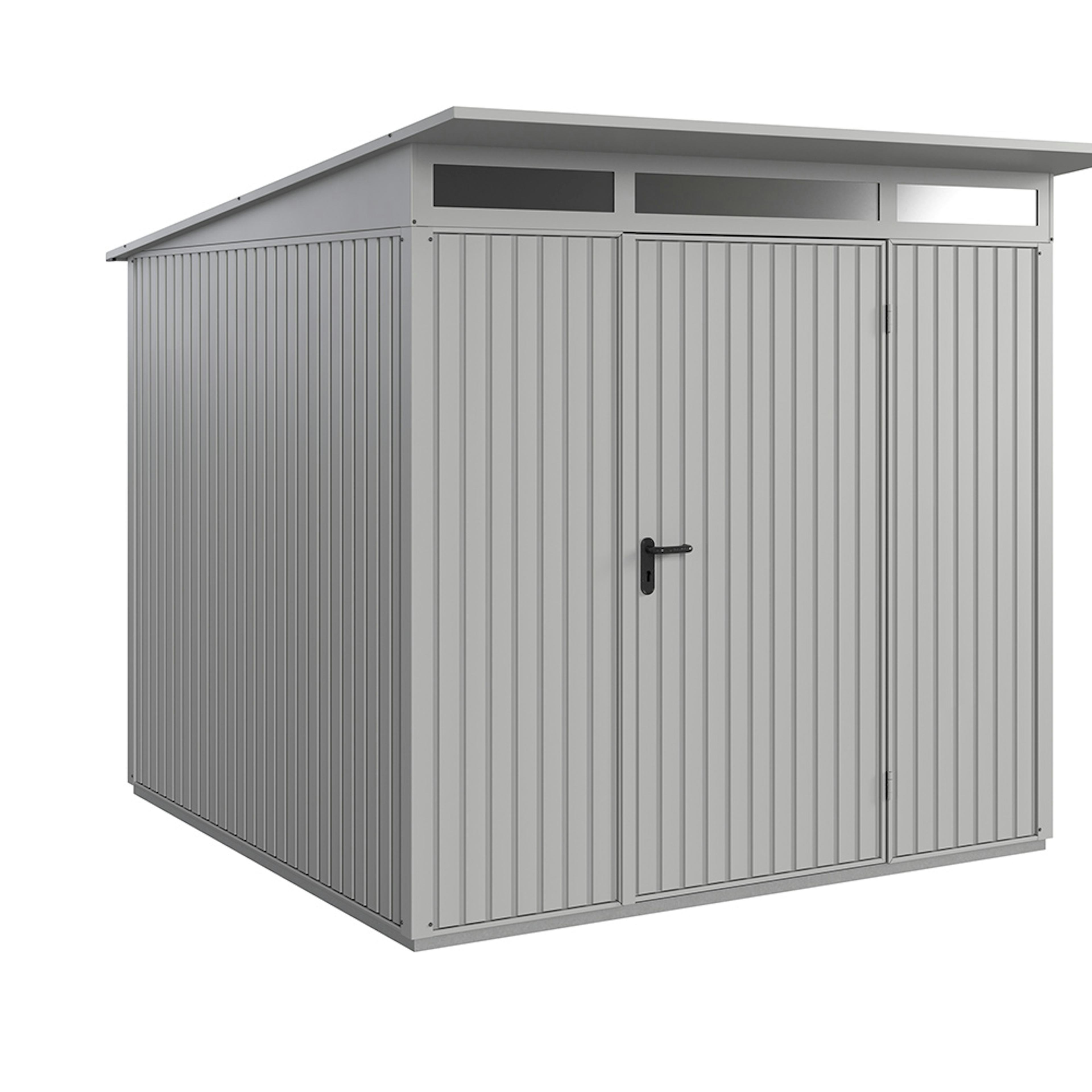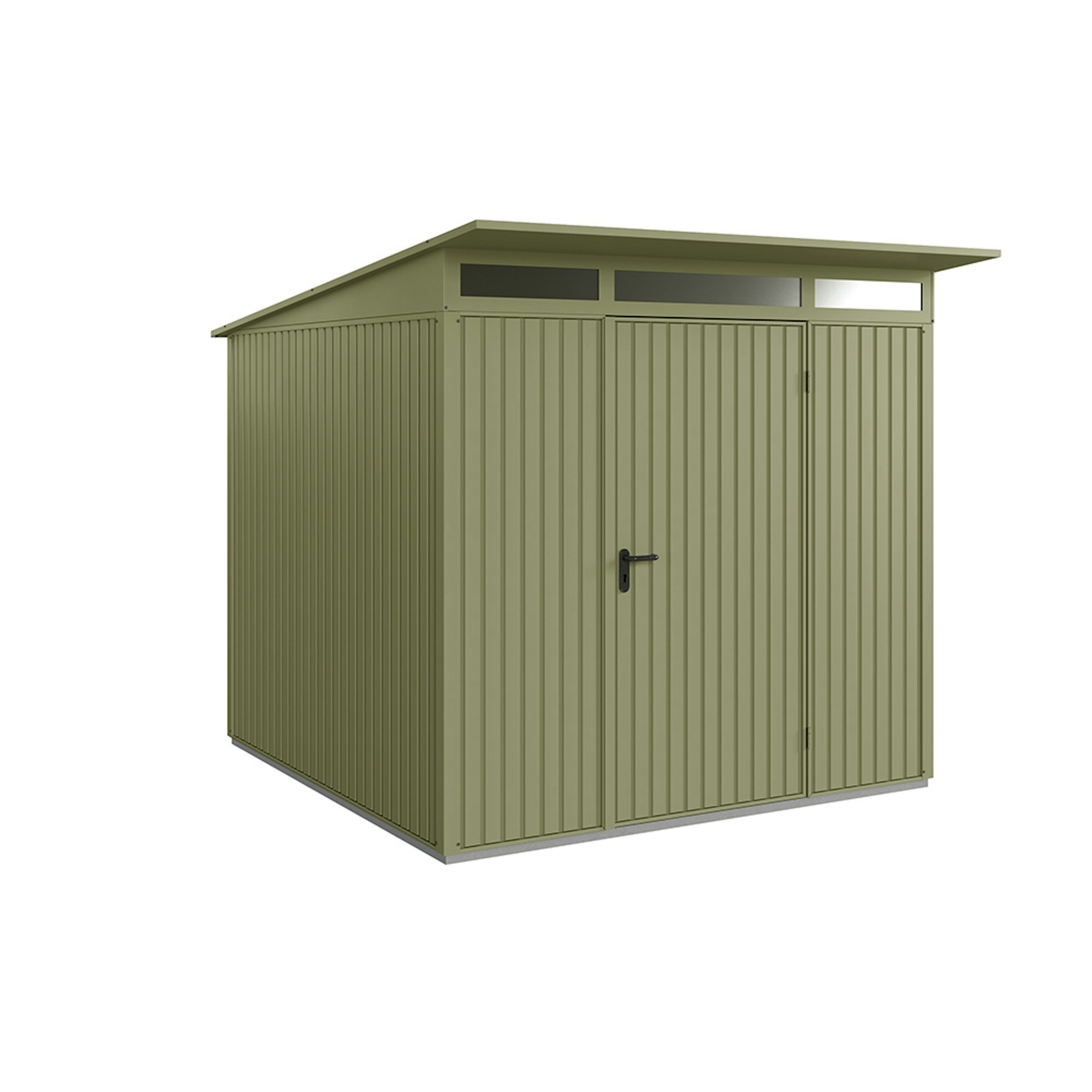 Redskapsbodarna får sin höga stabilitet och slitstyrka av dess stålkonstruktion och den höga materialtjockleken. Grundram i aluminium ingår alltid som standard. Alla skruvar och gångjärn är förzinkade och därmed skyddade mot oxidation. Redskapsbodarna är som standard utrustade med pålitliga dörrlås och högkvalitativa gångjärn. Modellen Modern levereras med integrerat överljus i akrylglas för invändigt dagsljus. Som tillval erbjuds ett stort antal hyllsystem i form av justerbara hyllor, cykelhållare, redskapshållare, belysning, aluminiumgolv mm.