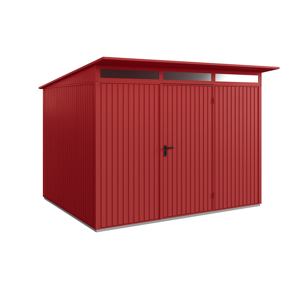 Redskapsbodarna får sin höga stabilitet och slitstyrka av dess stålkonstruktion och den höga materialtjockleken. Grundram i aluminium ingår alltid som standard. Alla skruvar och gångjärn är förzinkade och därmed skyddade mot oxidation. Redskapsbodarna är som standard utrustade med pålitliga dörrlås och högkvalitativa gångjärn. Modellen Modern levereras med integrerat överljus i akrylglas för invändigt dagsljus. Som tillval erbjuds ett stort antal hyllsystem i form av justerbara hyllor, cykelhållare, redskapshållare, belysning, aluminiumgolv mm.