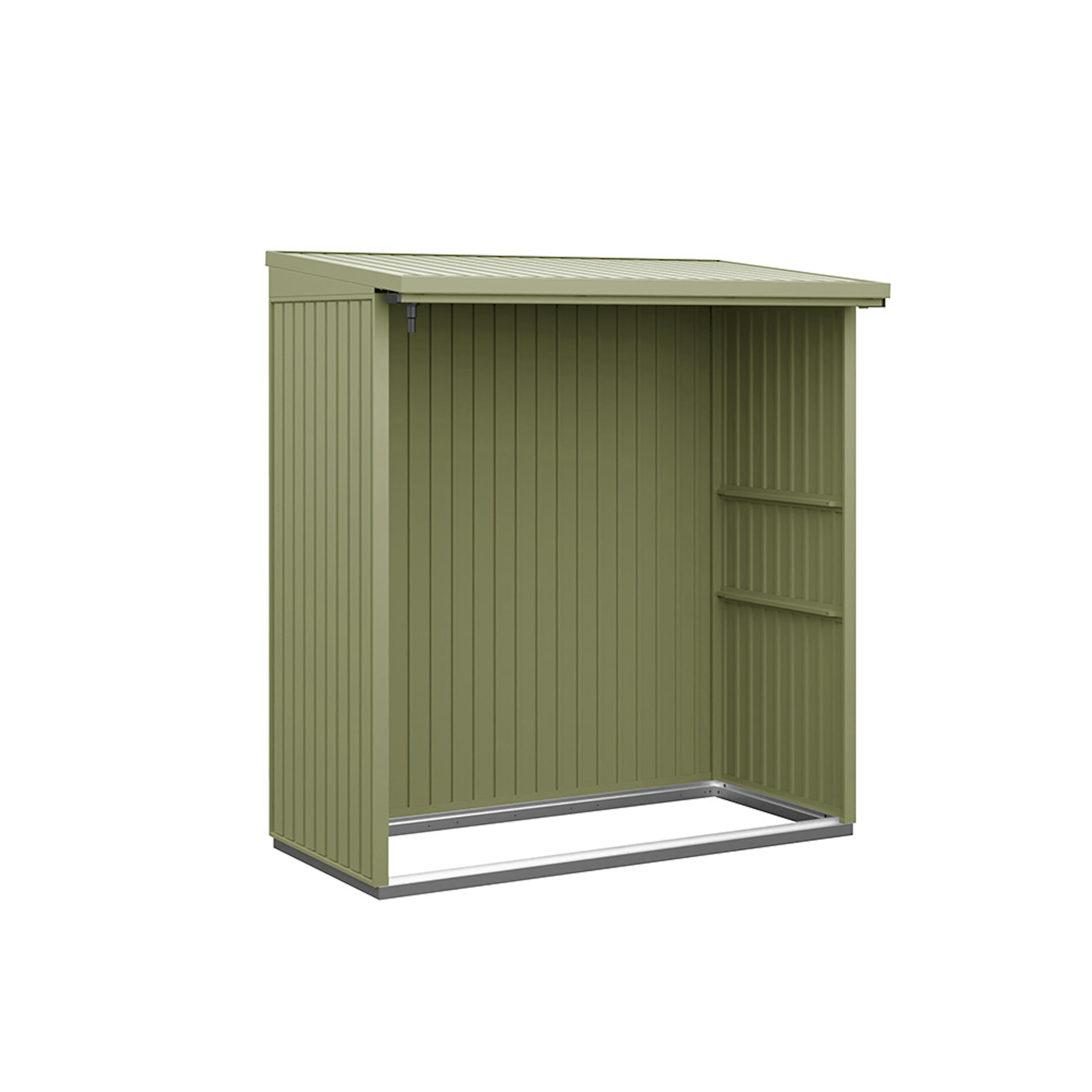 Vedskjulet får sin höga stabilitet och slitstyrka av dess stålkonstruktion och den höga materialtjockleken. Grundram i aluminium ingår alltid som standard. Alla skruvar och gångjärn är förzinkade och därmed skyddade mot oxidation. Vedskjulet har en integrerad hängränna för takavvattning. Bland tillvalen erbjuds t ex. stuprör, aluminiumgolv och bakre vägg.
