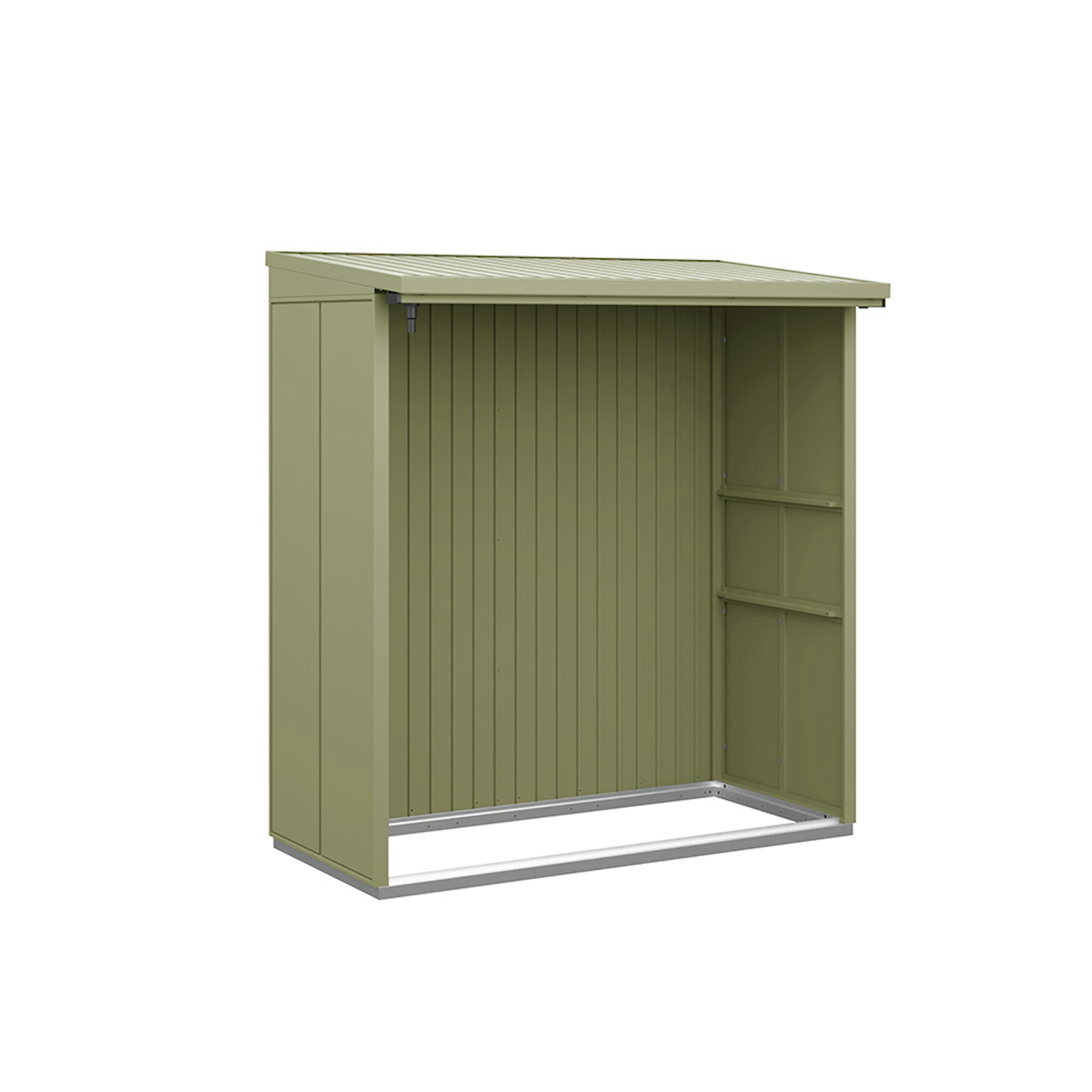 Vedskjulet får sin höga stabilitet och slitstyrka av dess stålkonstruktion och den höga materialtjockleken. Grundram i aluminium ingår alltid som standard. Alla skruvar och gångjärn är förzinkade och därmed skyddade mot oxidation. Vedskjulet har en integrerad hängränna för takavvattning. Bland tillvalen erbjuds t ex. stuprör, aluminiumgolv och bakre vägg.