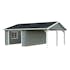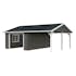 Palmakos garage Roger 19,0+16,2 m2 med solid 44 mm knuttimmervägg är inte bara den perfekta lösningen för att hålla din bil säkert inomhus, utan den har också funktionaliteten att behålla dina familjefordon under den skyddande carporten, samtidigt som det ger extra utrymme för dina förvaringsbehov. De generösa måtten gör att du kan parkera din bil bekvämt och har extra utrymme för verktyg, cyklar och andra föremål.