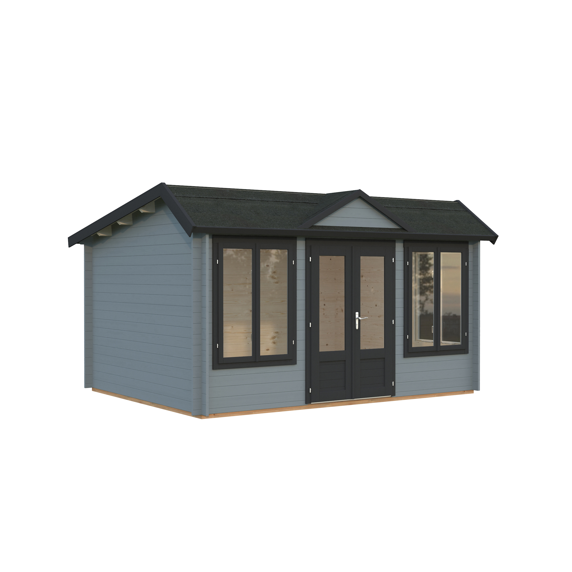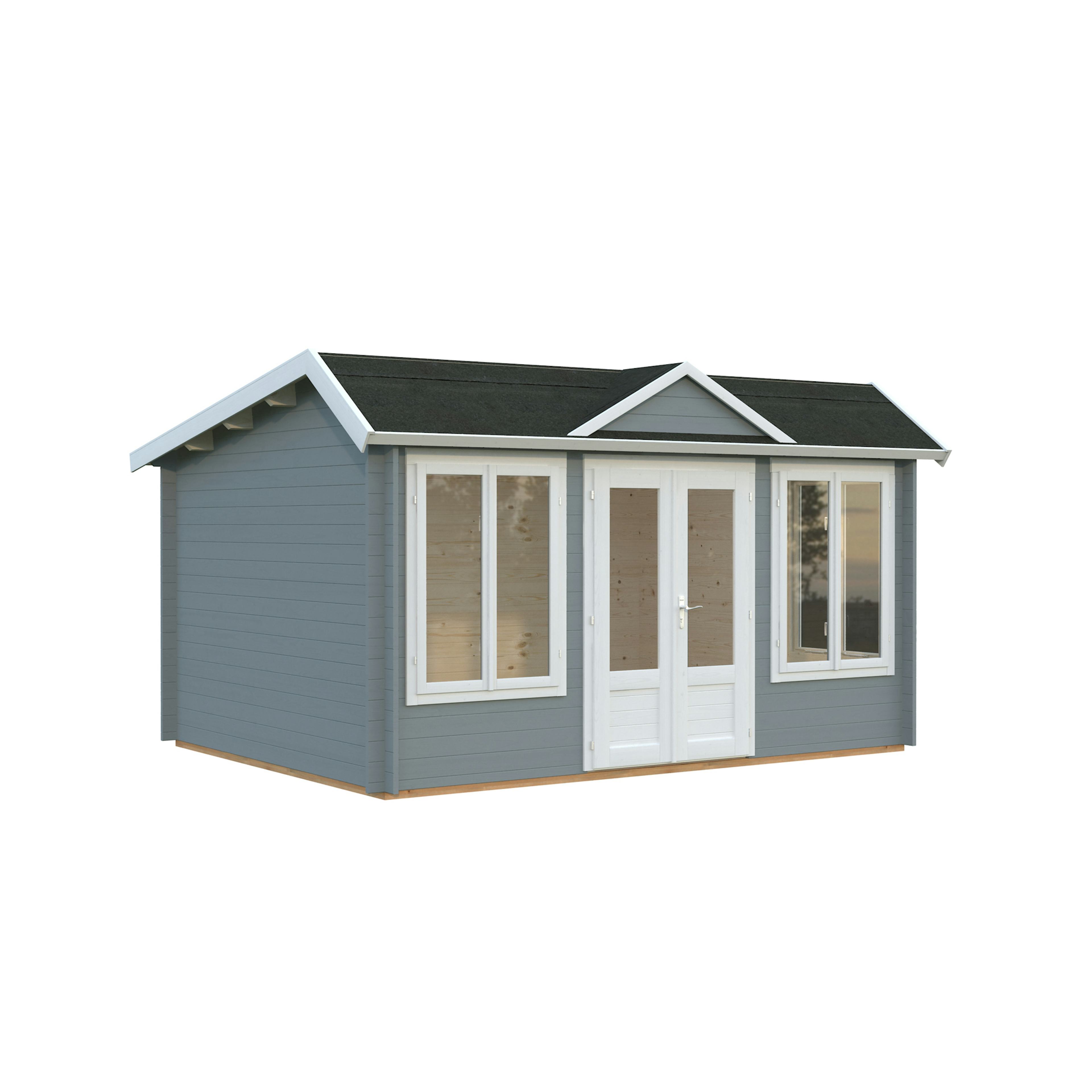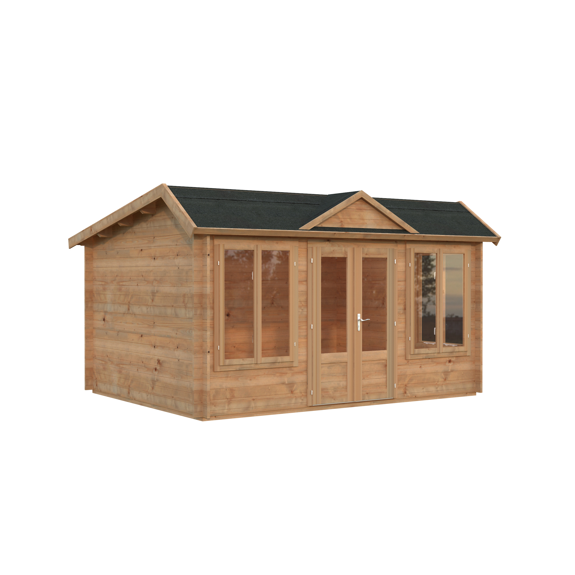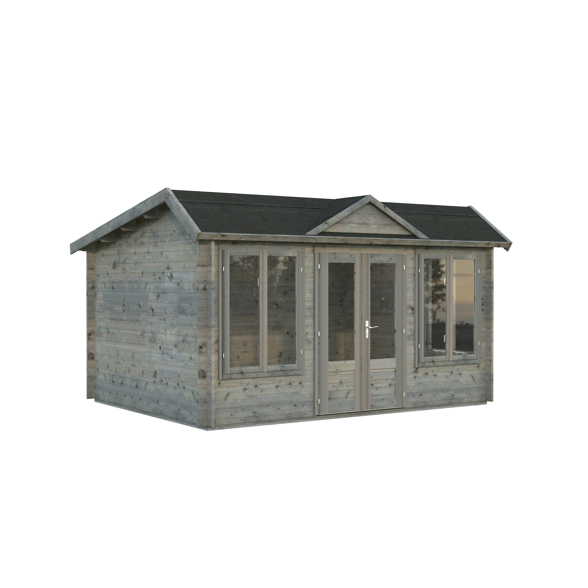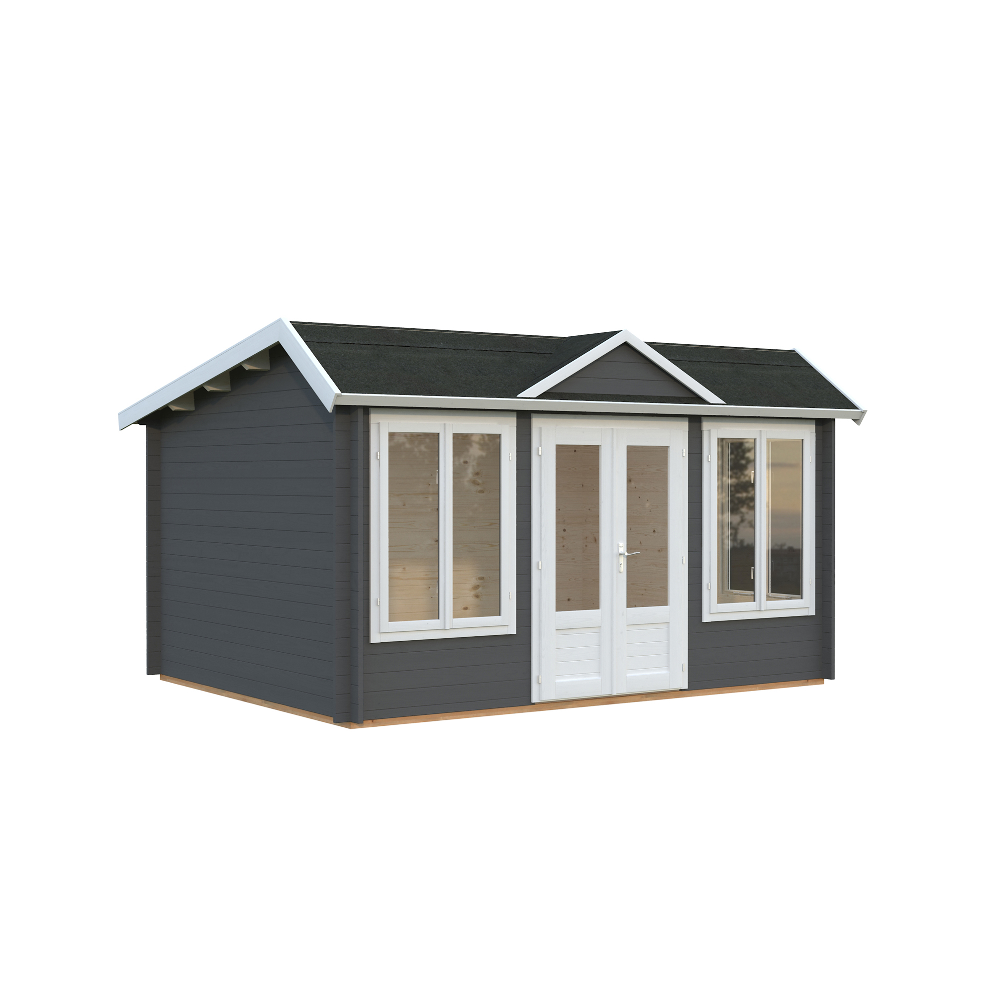 Palmakos stuga Claudia 11,5 m2 visar upp en takdesign i klassisk klockhusstil. Medan många kunder uppskattar det eleganta taket i viktoriansk stil, föredrar andra ett enklare topptak. Av denna anledning är monteringen av takkupan valfri.