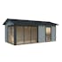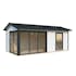 Palmakos stuga Amanda 17,1 m² Slide är ett mångsidigt och modernt trädgårdshus som passar perfekt för olika användningsområden. Med sina 44 mm tjocka väggar och sadeltak erbjuder den ett stilrent utseende. De två uppsättningarna av skjutdörrar i aluminium och härdat säkerhetsglas ger både en elegant design och ett bra ljusinsläpp, vilket gör den till ett ljust och luftigt utrymme.