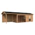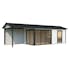 Palmakos stuga Amanda 17,1 + 7,8 m² Slide är ett mångsidigt och modernt trädgårdshus som passar perfekt för olika användningsområden. Med sina 44 mm tjocka väggar och sadeltak erbjuder den ett stilrent utseende. Med sina 17,1 m² ger den gott om utrymme för en rad aktiviteter, oavsett om du vill använda den som ett hobbyutrymme, för växter, konst, hantverk eller som en verkstad. Den kan även omvandlas till ett hemmakontor, en yoga- eller träningslokal, eller en mysig samlingsplats för vänner och familj.