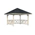 Stugan är tillverkad av långsamväxande nordisk gran, med 120x120 mm starka limträstolpar och 19 mm takbrädor. Ett slitstarkt och högkvalitativt material som är särskilt anpassat till de tuffa svenska väderförhållandena. Levereras som byggsats inklusive alla fästelement.
