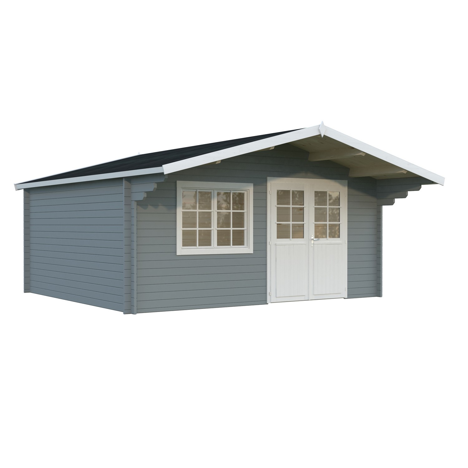 Uthuset Lea med raka linjerna skapar ett modernt uttryck och blir ett stilfullt inslag i din trädgård. Uthuset knuttimras med 44mm tjocka väggar och har en glasad vikdörr med fönster ända ner till golvet. Med den 265cm breda dörröppningen kan du sudda gränsen mellan inne och ute. En modern liten pärla som skapar utrymme för att samla nära och kära i din trädgård.