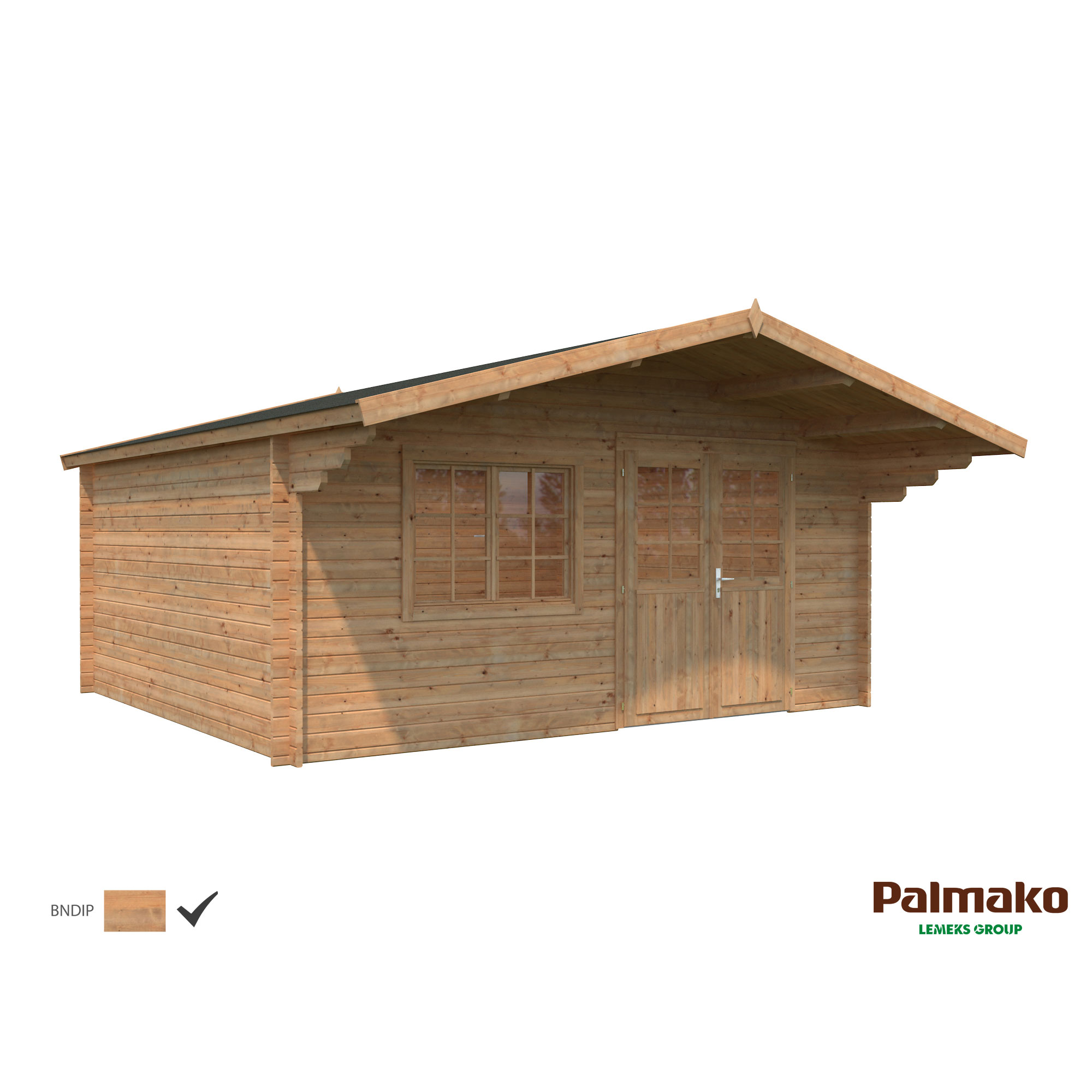 Stuga av 40 mm knuttimmer, vindtäta dubbelhaksknutar och 132 cm takutsprång över entrén. Stugan har ett spröjsat enkelfönster med vrid- och tippfunktion samt en halvglasad pardörr med limträkarm, cylinderlås och rostfri plåt som skyddar tröskeln. 5 års garanti.